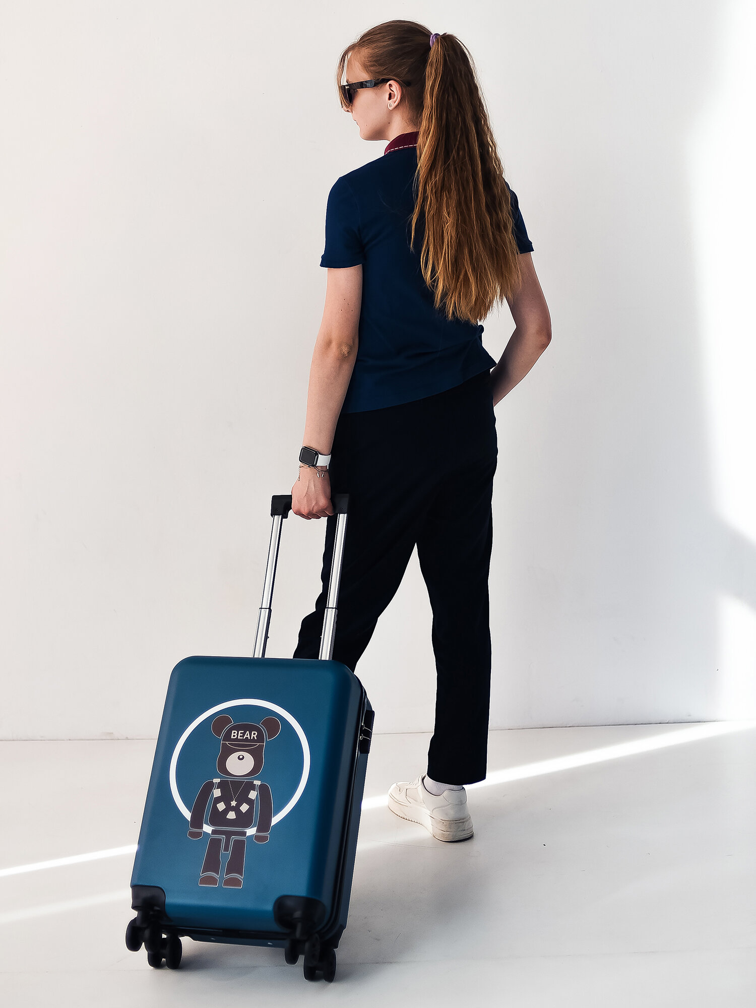 Купить Дорожный чемодан детский на колесиках, ручная кладь размера XS арт. 712 Медведь, синий
