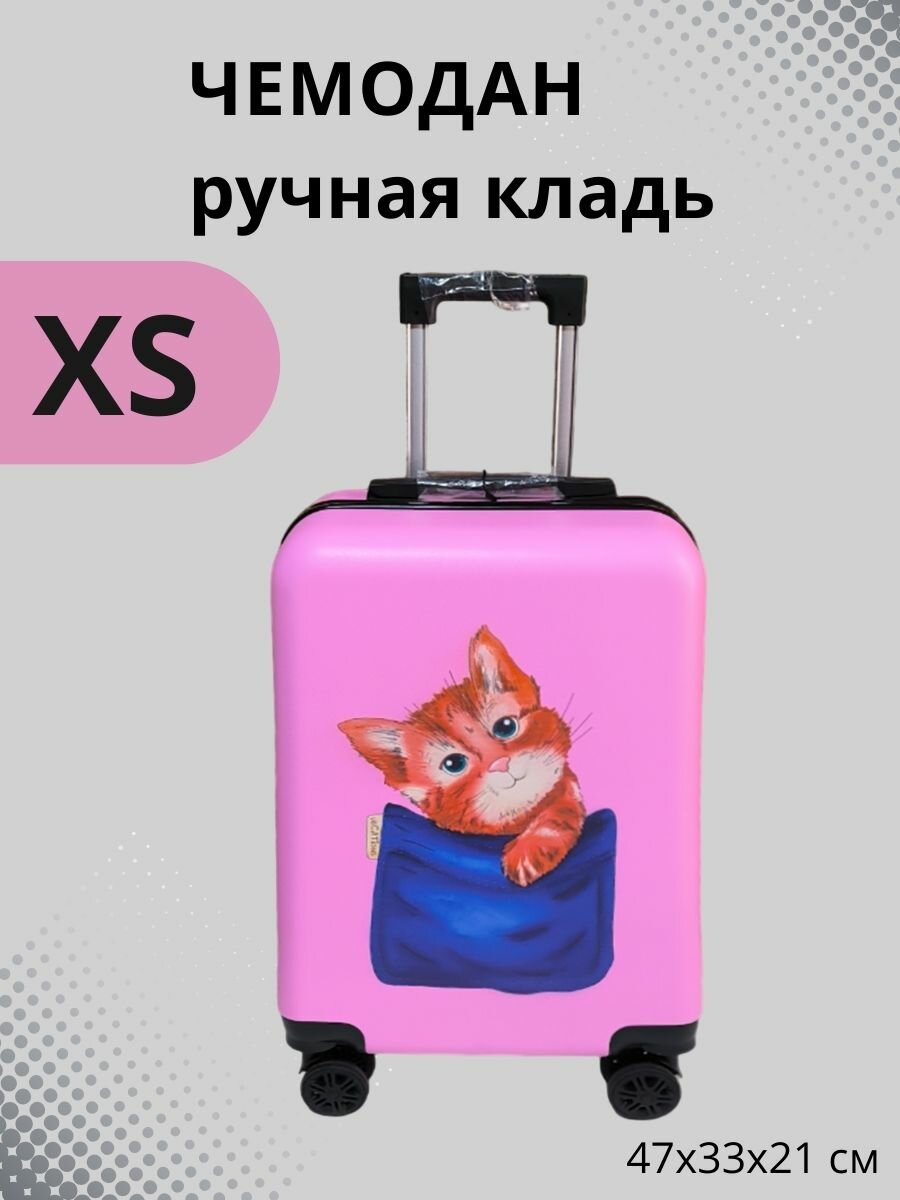 Купить Дорожный чемодан детский на колесиках, ручная кладь размера XS арт. 706 Кот в кармане, розовый