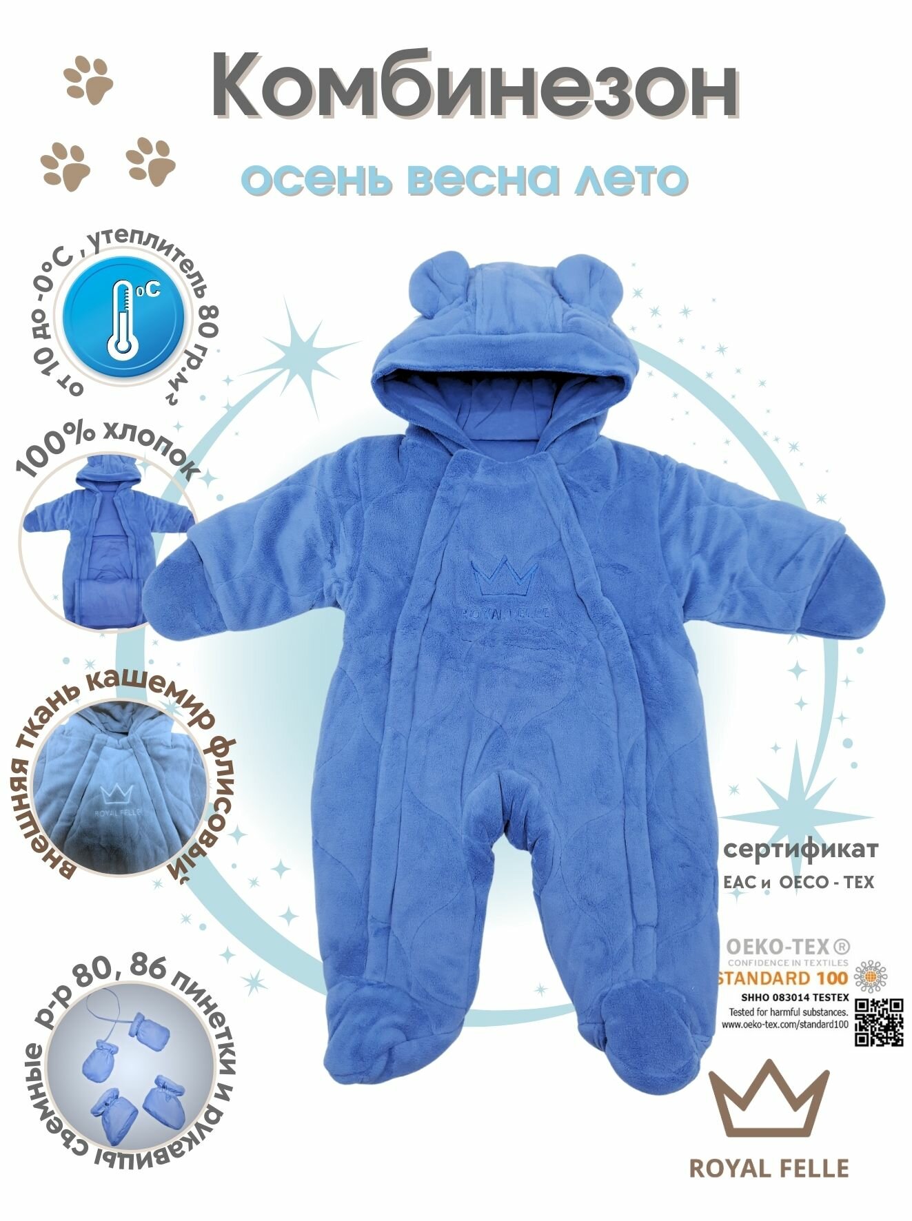 Комбинезон ROYAL FELLE Easy Blue 80, размер 80, , синий