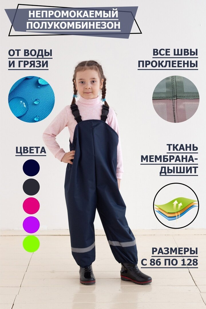 СохранитьНепромокаемый полукомбинезон для девочек / непромокаемые штаны / комбинезон дождевик синий 92 интересное: