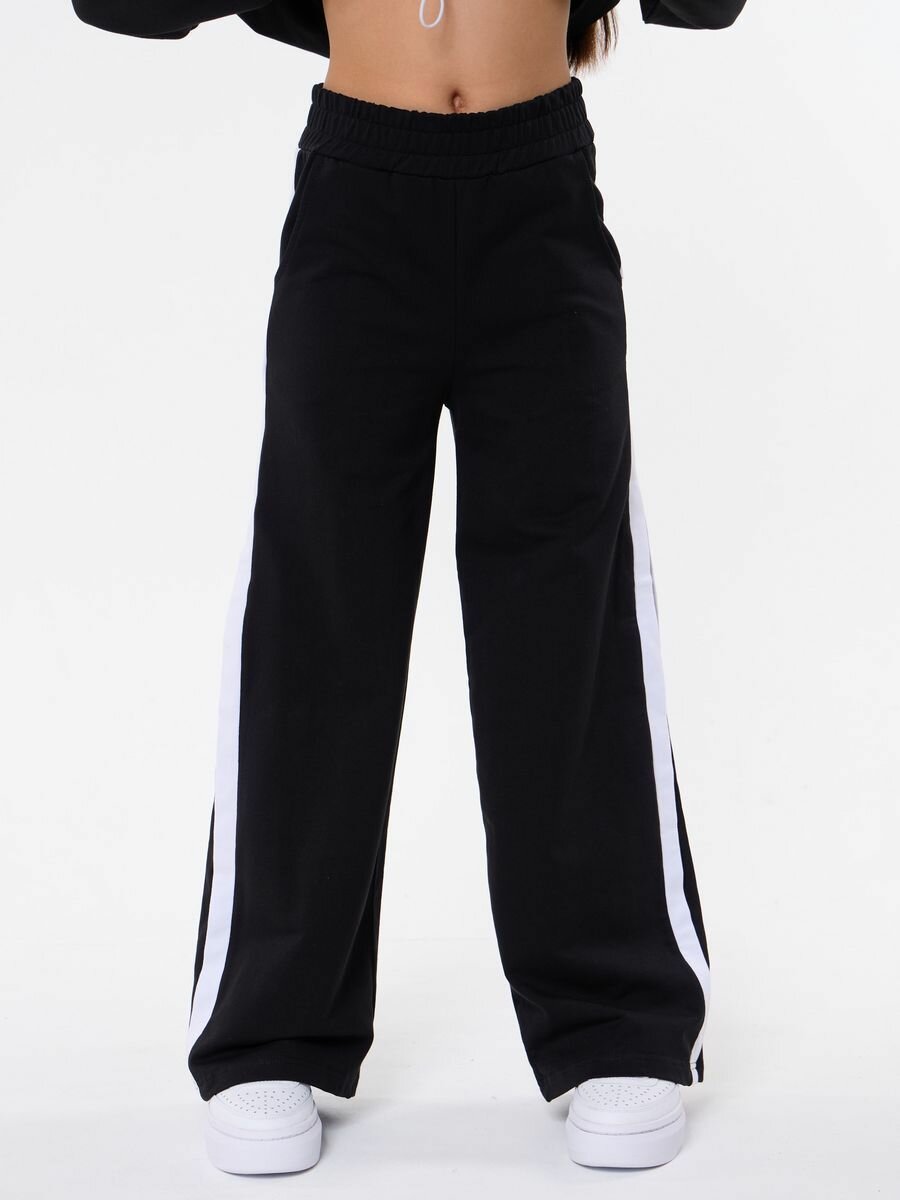Брюки широкие палаццо с лампасами для девочки, спортивные штаны, 134 , хлопок, школьные