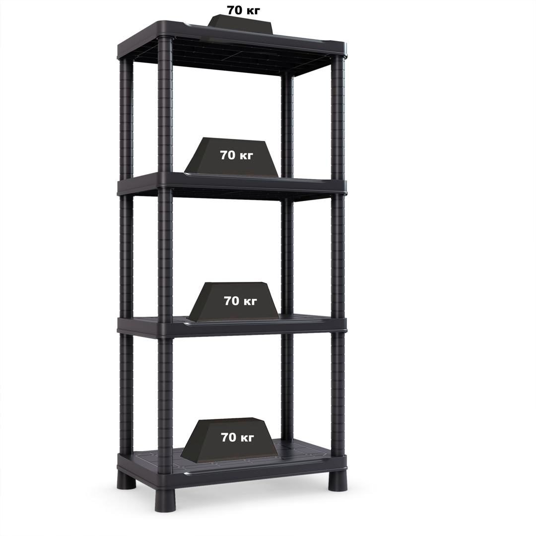 Стеллаж 80x143x40 см 4 полки пластик цвет чёрный нагрузка на полку до 70 кг интересное: