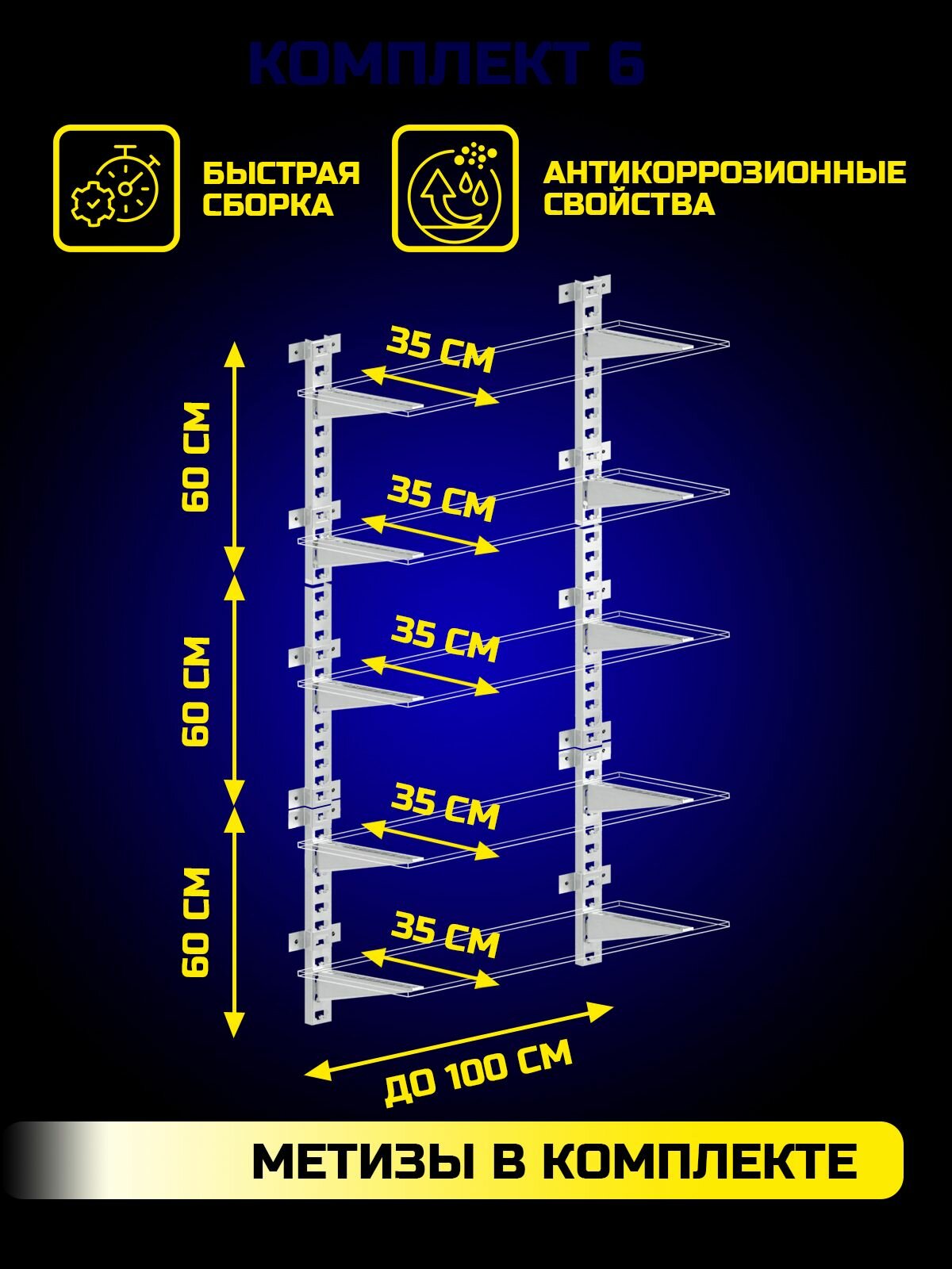 Купить Стеллаж металлический №6 для гаража, балкона, дачи настенный для хранения. Система гаражного хранения кладовки, полки - этажерка для книг