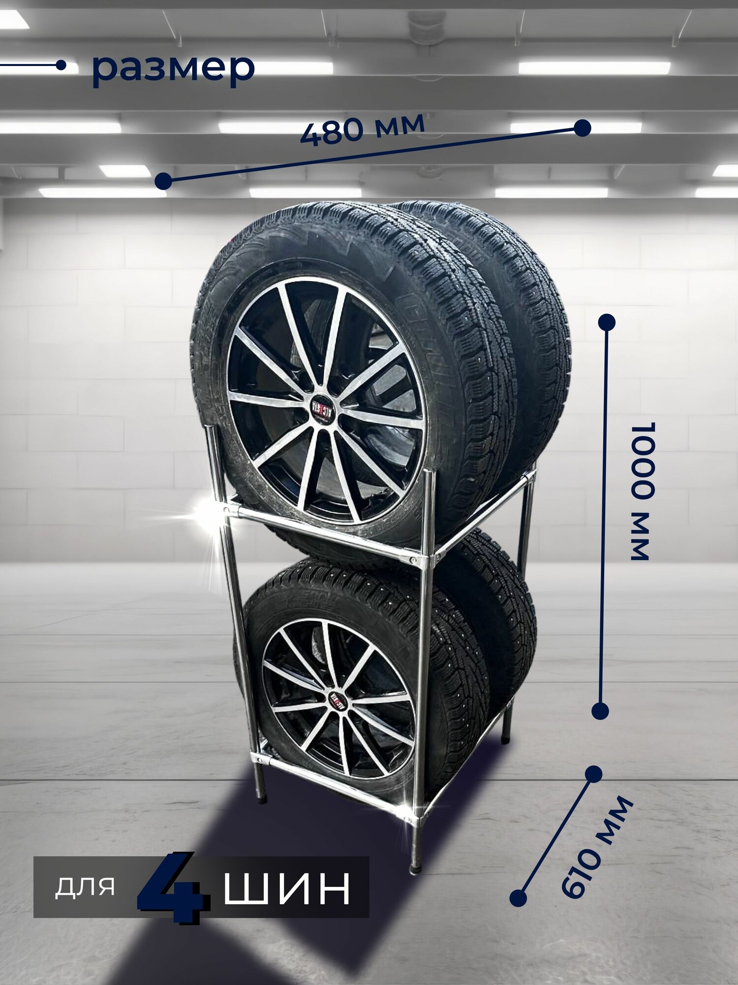 Купить Стеллаж для хранения 4 шин х Система хранения для гаража "BERGAMO"