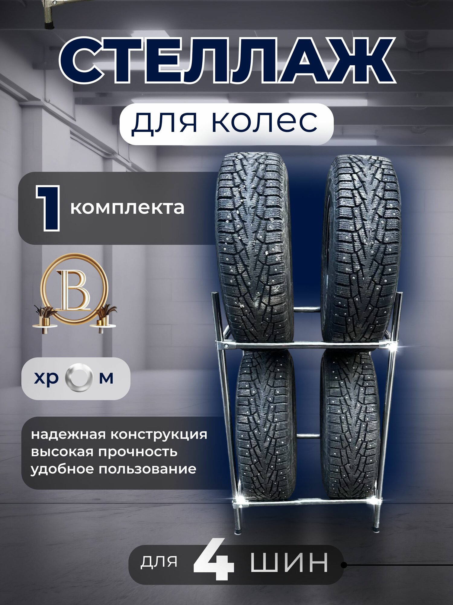 | Комплектация | Стеллаж для колес (со всей необходимой фурнитурой для сборки)- 1шт. Инструкция по сборке- 1шт. |