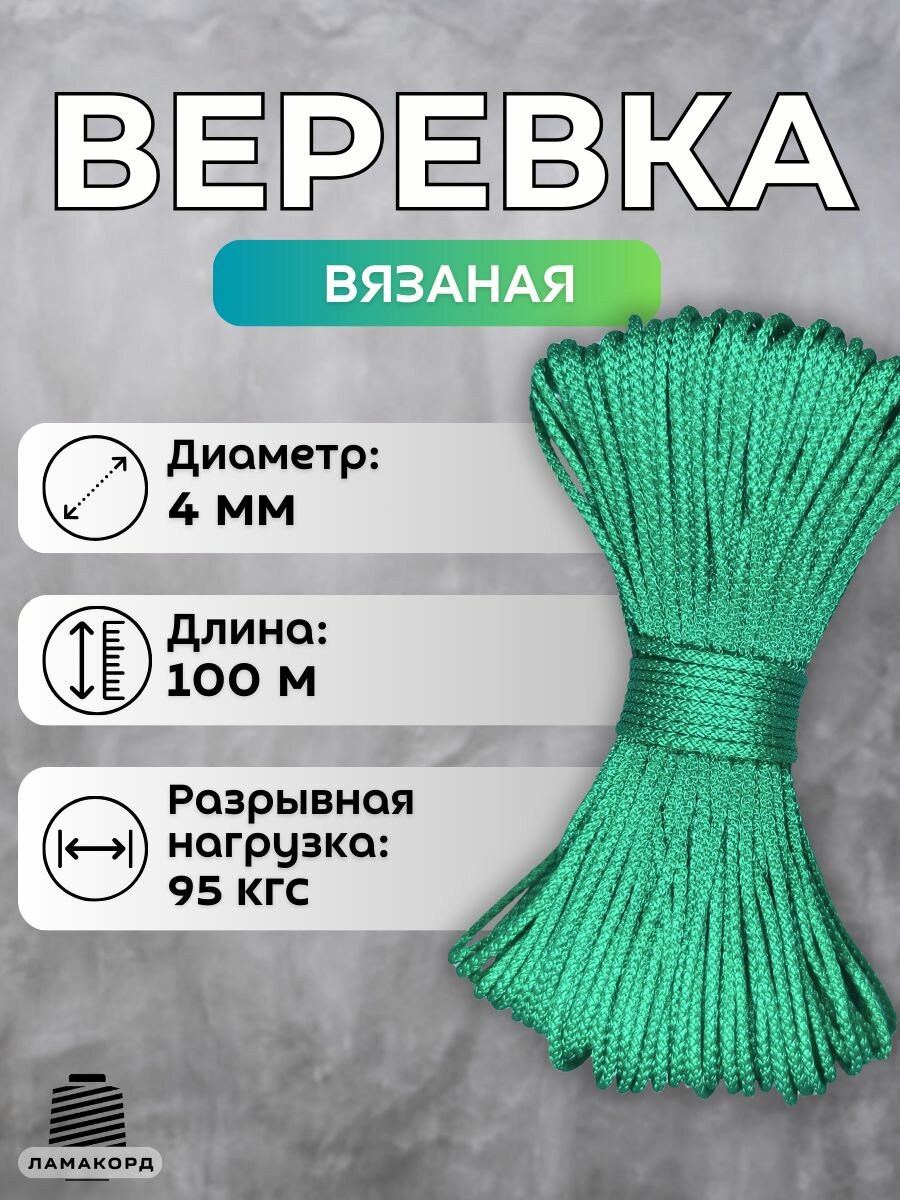 Купить Веревка бельевая 4 мм 100 м зеленая. Шнур бельевой вязаный полипропиленовый с сердечником