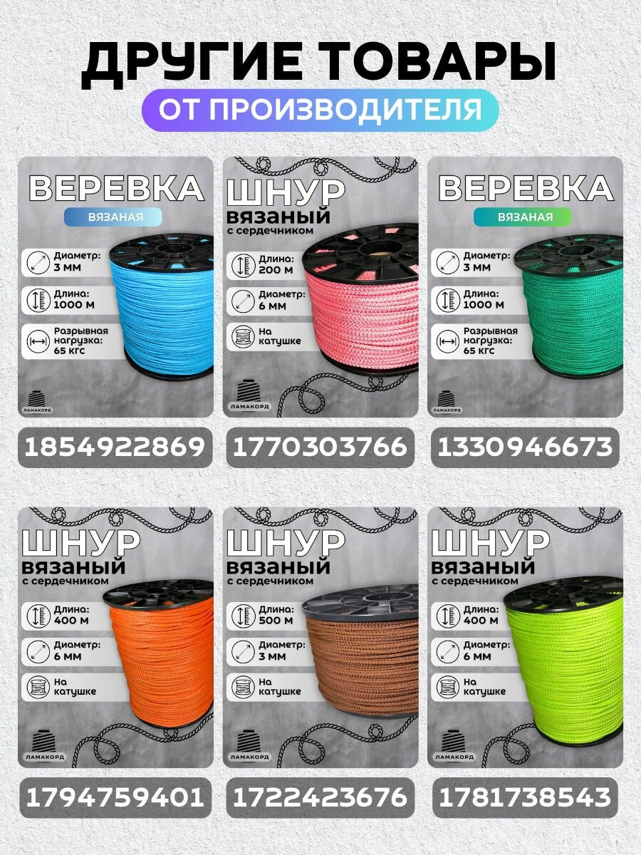 Веревка бельевая 6 мм 400 м цветная. Шнур бельевой вязаный с сердечником. Шнур для рукоделия