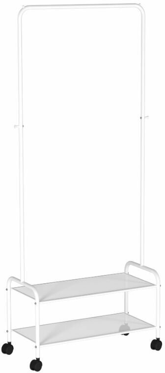 Вешалка напольная ЗМИ Валенсия 22М, стойка на колесах для хранения одежды и обуви металлическая со штангой, белая