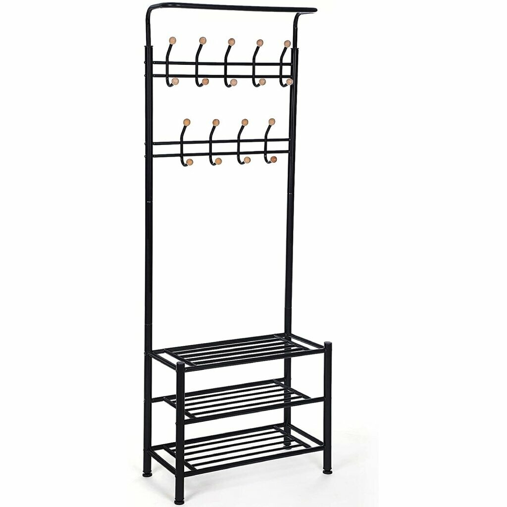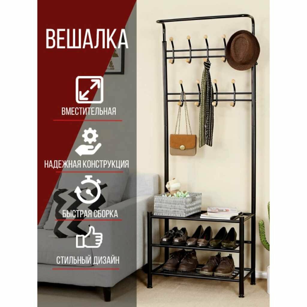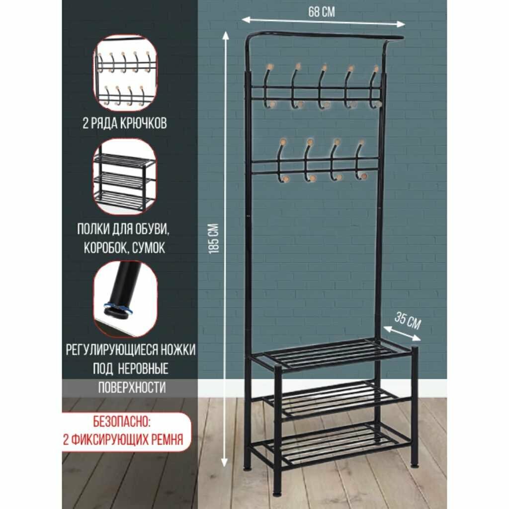 Вешалка в прихожую 68х35х185 см, Songmics, металл, полка для обуви, 40 кг, Лофт, HSR04B, черная интересное: