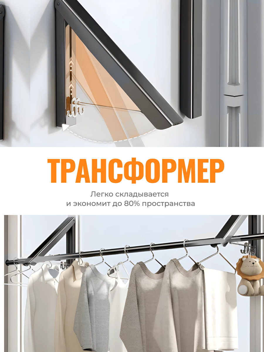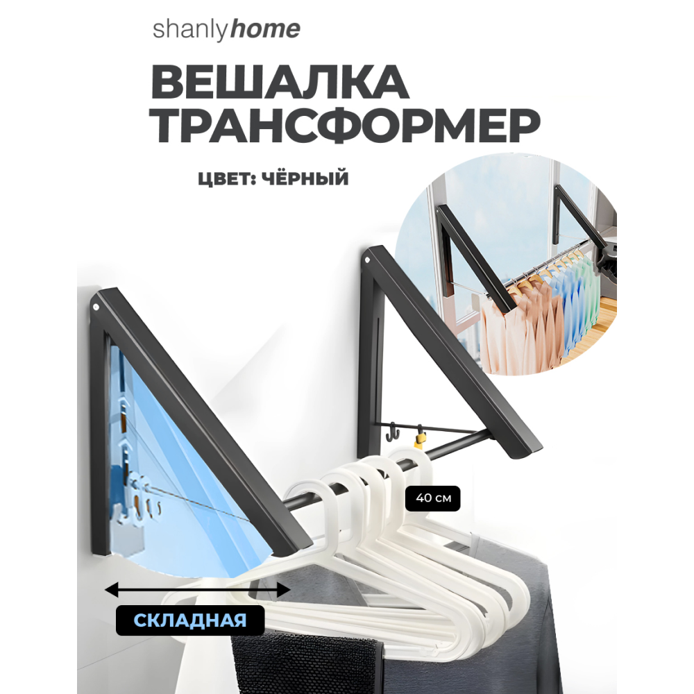 Складная вешалка настенная для одежды Shanly, черный рейл интересное: