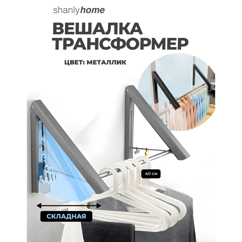 Складная вешалка настенная для одежды Shanly, серый-металлик рейл интересное: