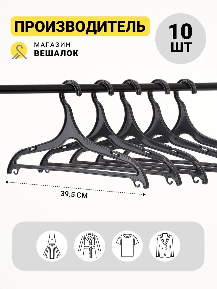 Набор вешалок для одежды "Магазин вешалок" ВПЛ15, 10 штук, черный цвет, пластик