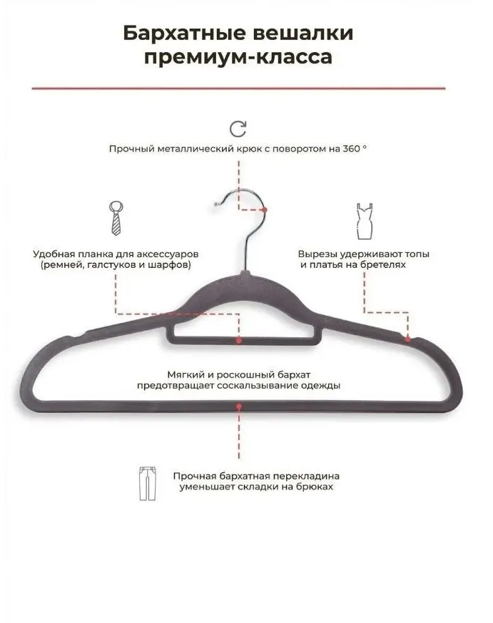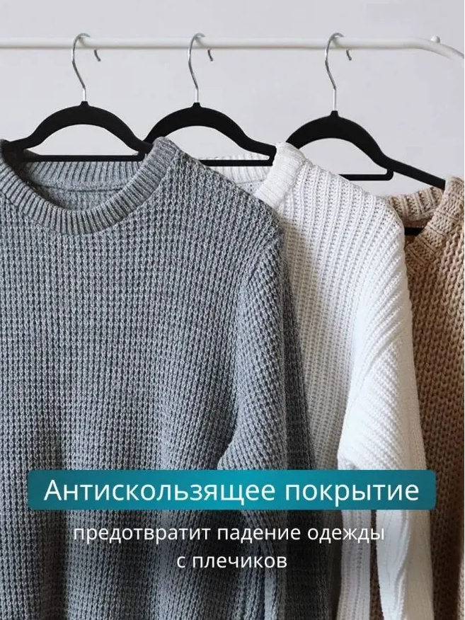 Вешалки-плечики бархатные для одежды, цвет черный, набор 10шт, длина 41см. интересное: