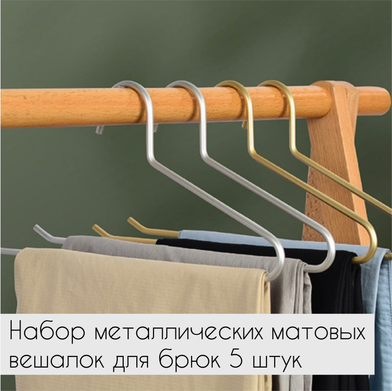 Набор металлических матовых вешалок для брюк - серебристые 5 штук AL-Home интересное: