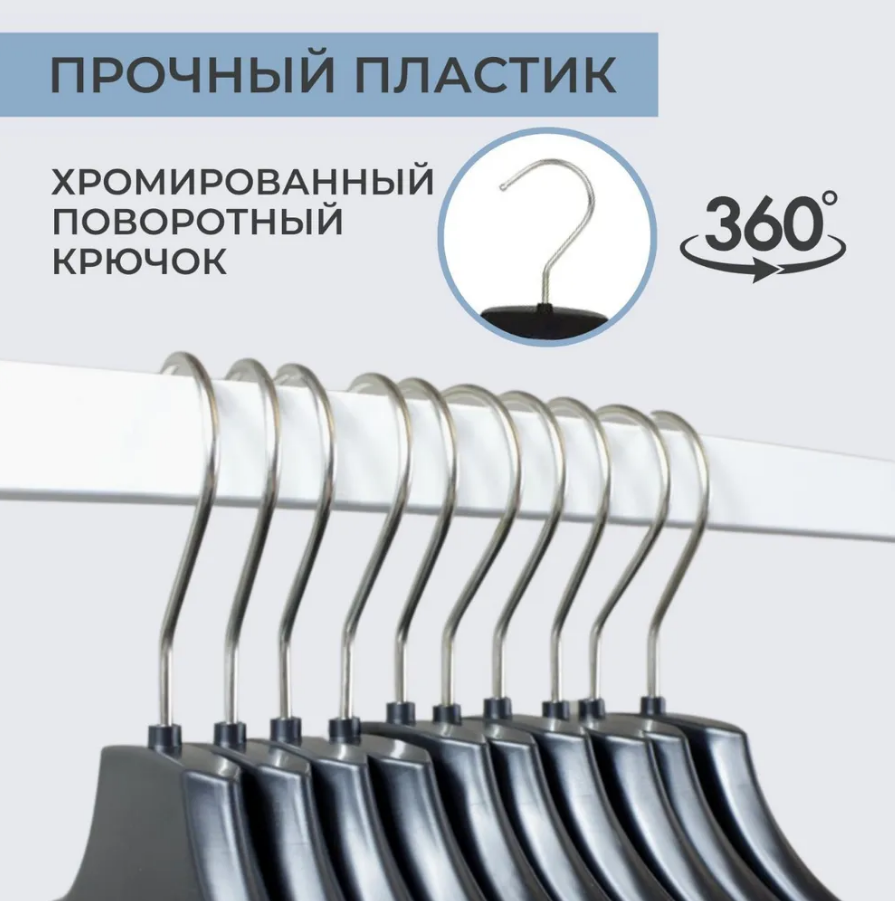 Вешалки-плечики для одежды пластиковые, 44 см, цвет черный, комплект 10 штук интересное: