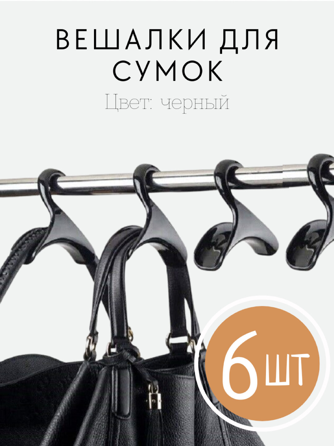 Вешалка и крючок для сумок в шкаф, цвет: черный, 6 шт. в наборе интересное:
