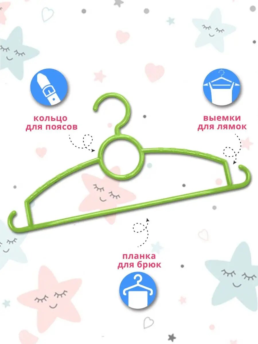 Набор вешалок детских пластиковых 29см 12 штук цвет зеленый интересное: