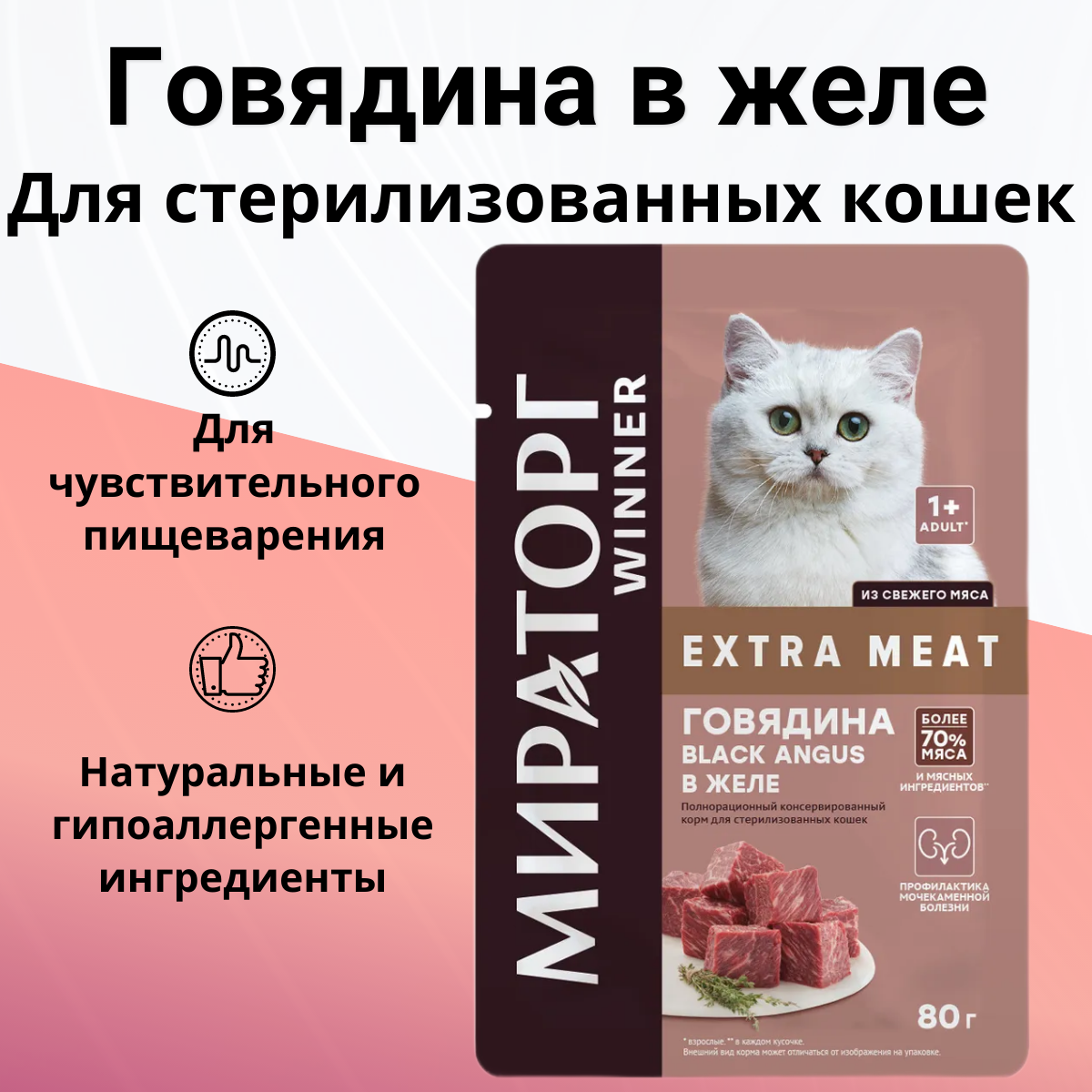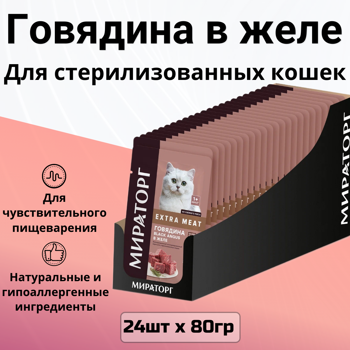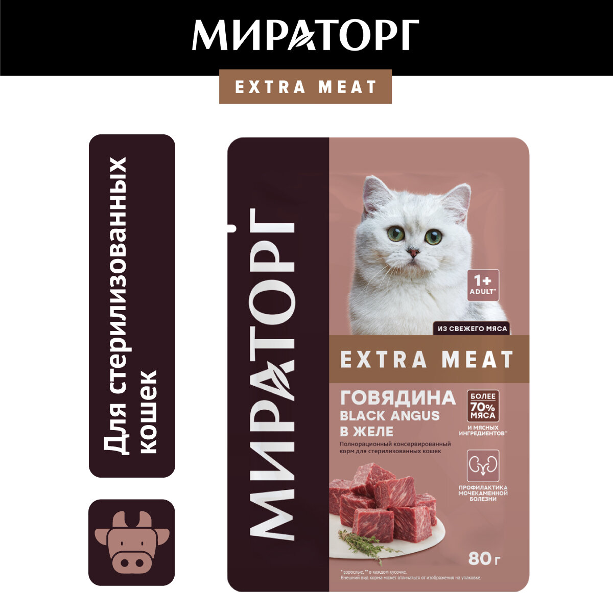 Влажный корм Мираторг Extra Meat для стерилизованных кошек, с говядиной в желе, 80г х 24шт