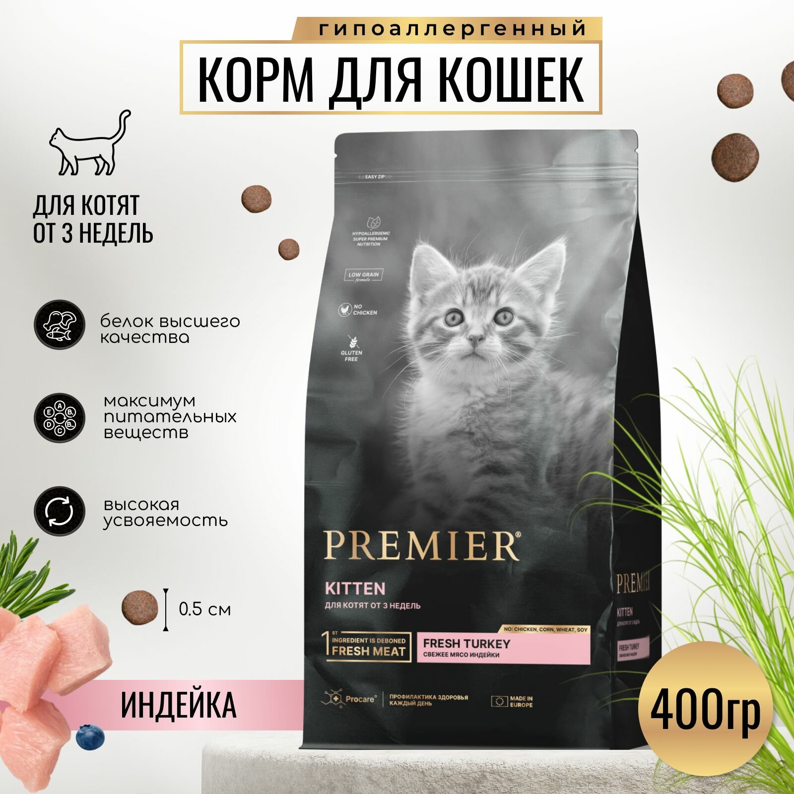 Купить Premier Cat Turkey Kitten сухой корм Премьер для котят и кормящих или беременных кошек, свежее мясо индейки - 400 г