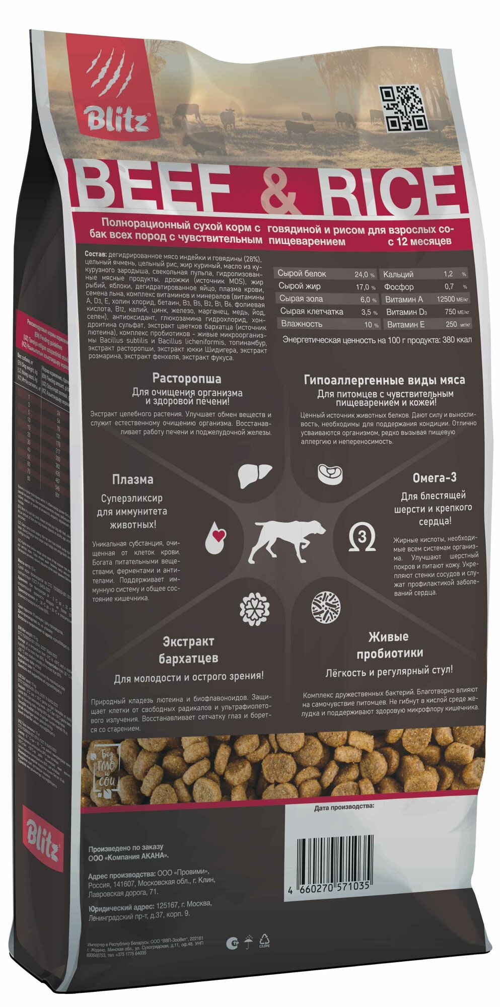 Blitz Sensitive Beef & Rice Adult Dog All Breeds 1,8кг с говядиной и рисом сухой корм для взрослых собак всех пород