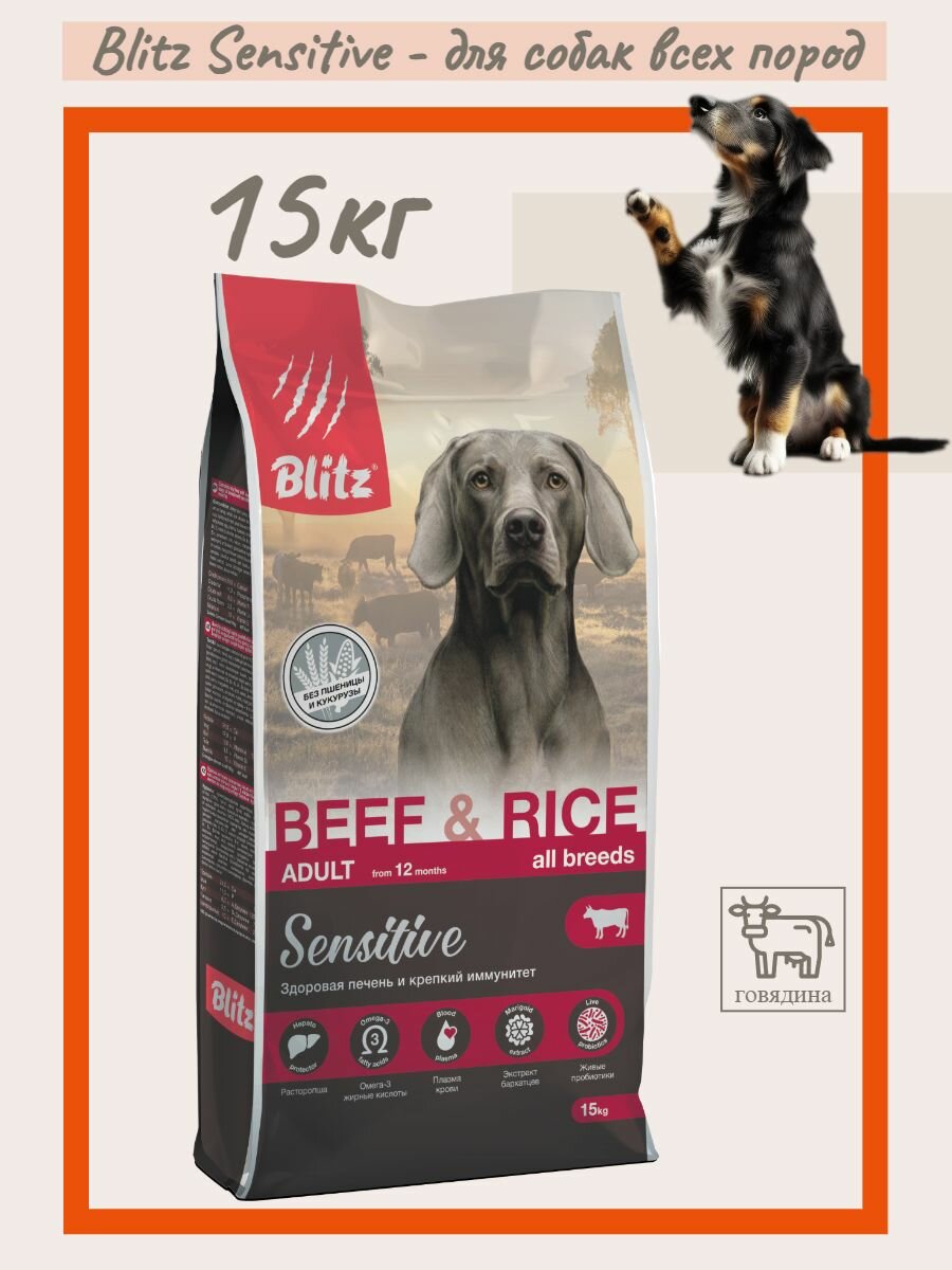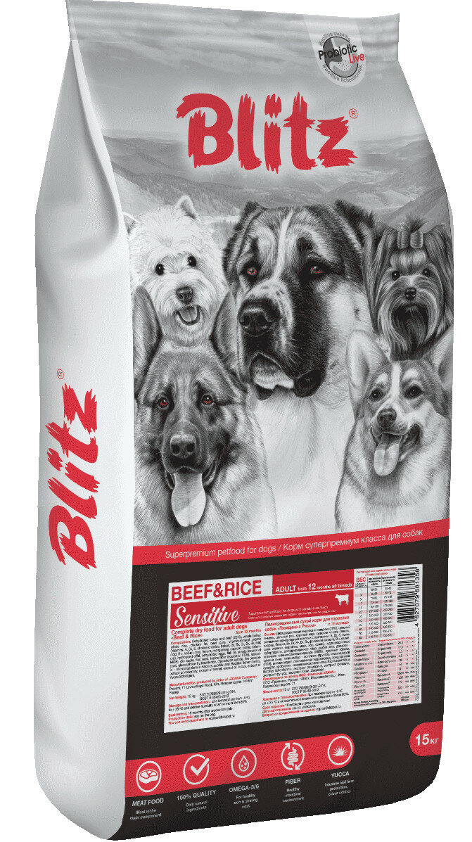 Корм сухой для собак BLITZ Adult Sensitive с говядиной и рисом, 1,8 кг