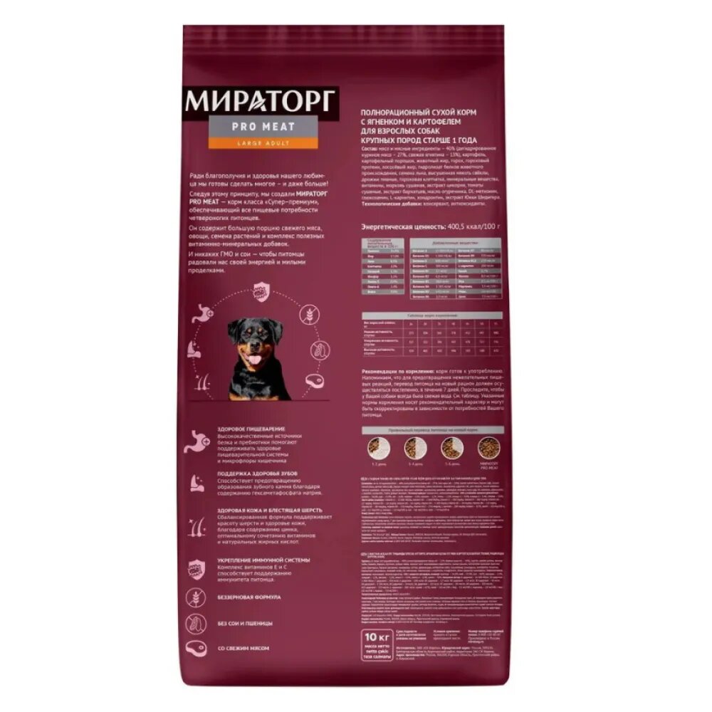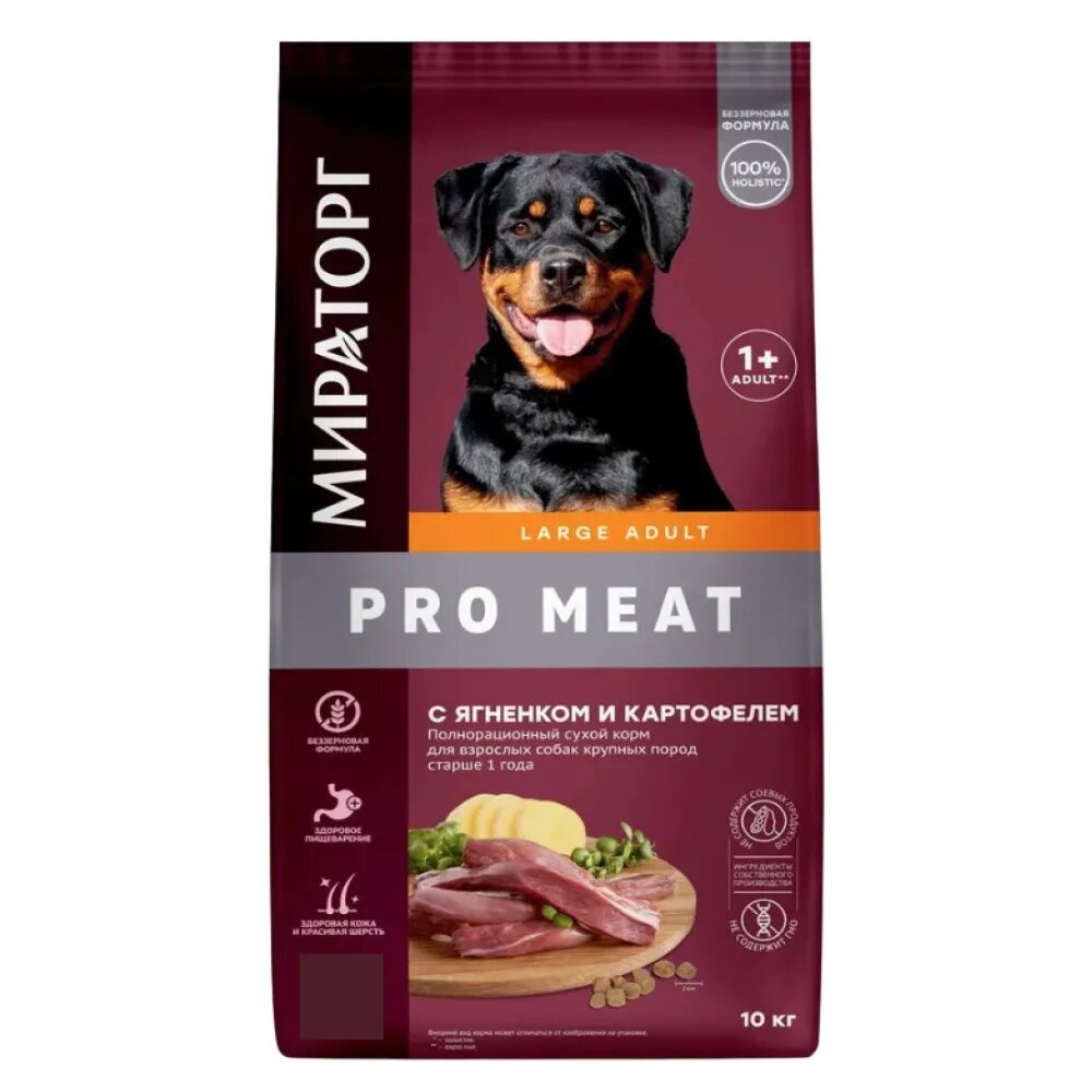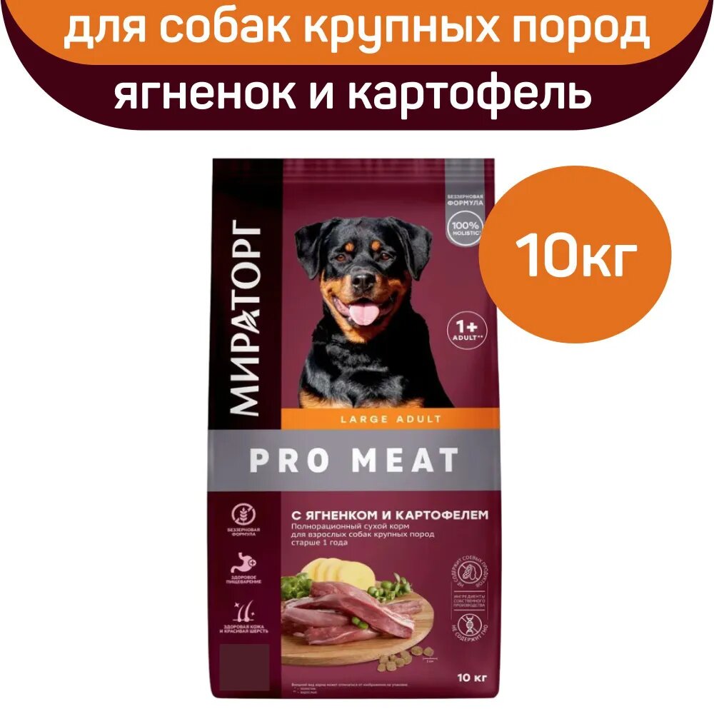 Сухой корм для собак Мираторг Pro Meat полнорационный, крупных пород, старше 1 года, с ягненком и картофелем 10 кг