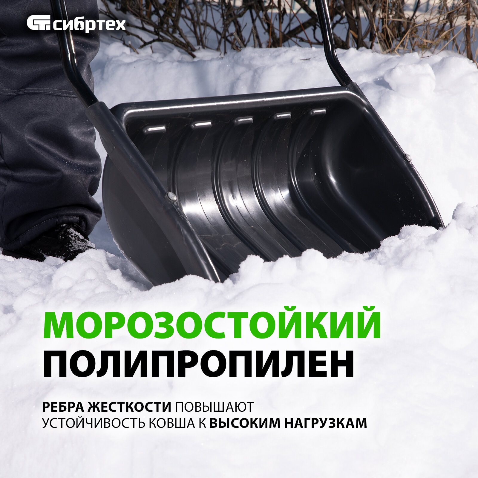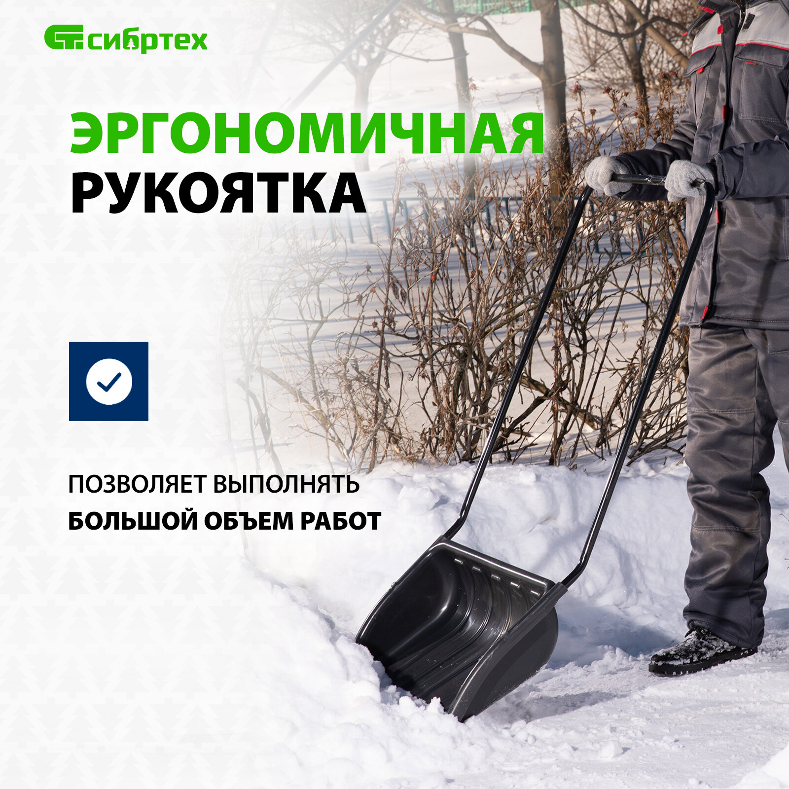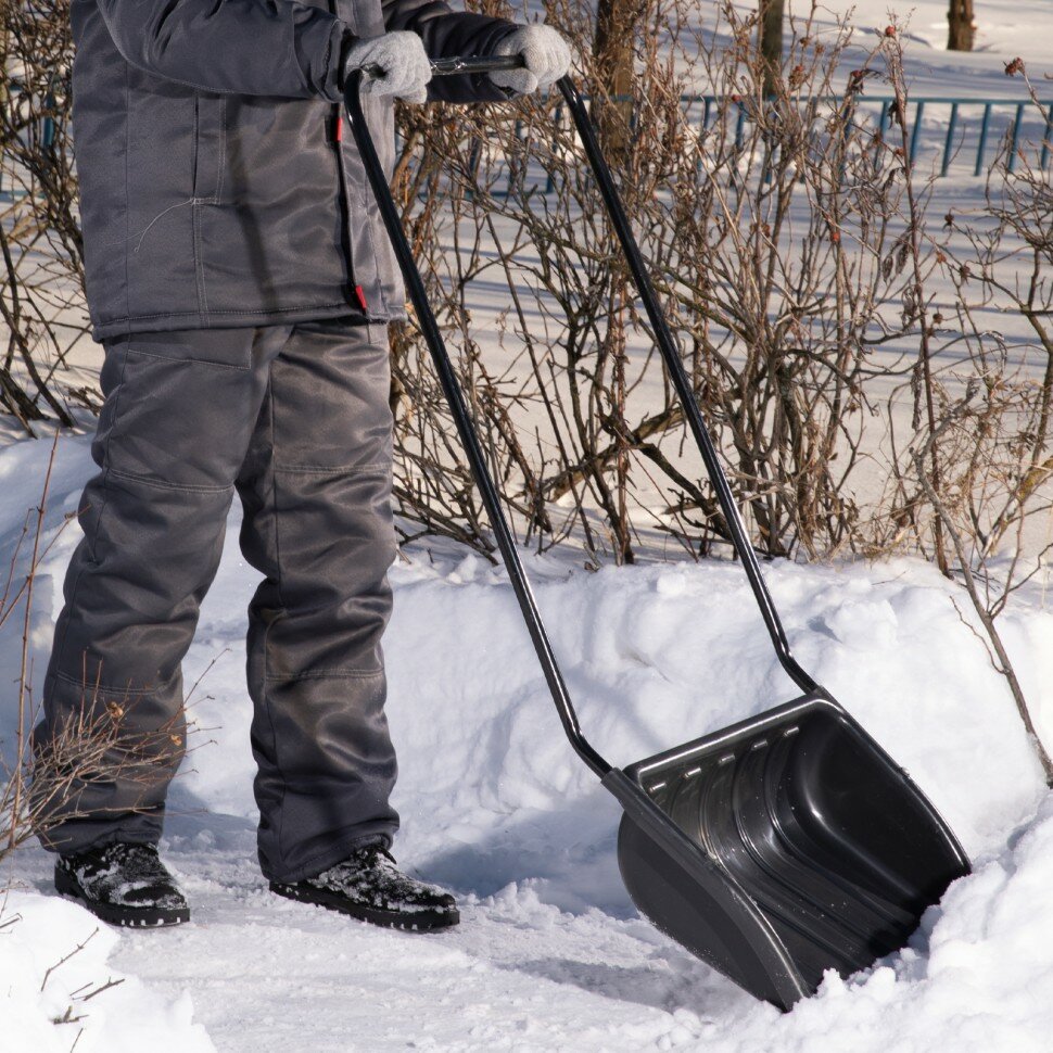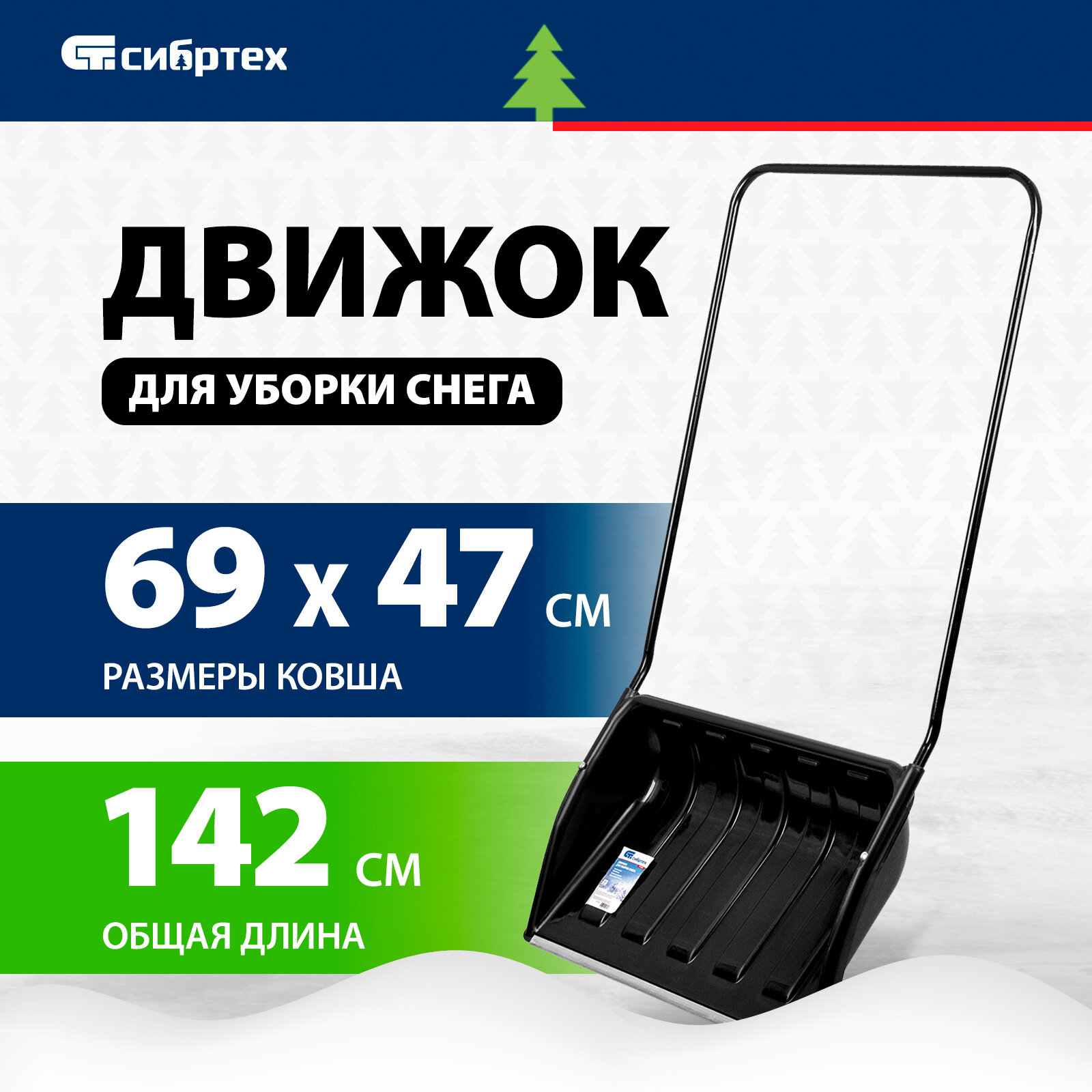 Движок для уборки снега Сибртех пластиковый 690х470х1420 мм, стальная рукоятка 61642 интересное: