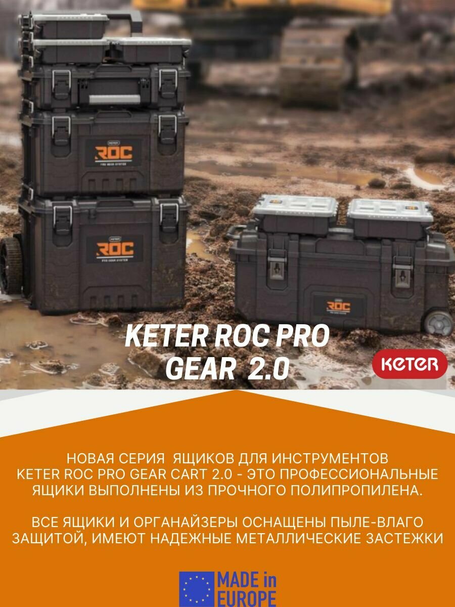 Ящик для инструментов KETER ROC PRO GEAR 2.0 (28) пластиковый ящик-тележка на колесах (38375)