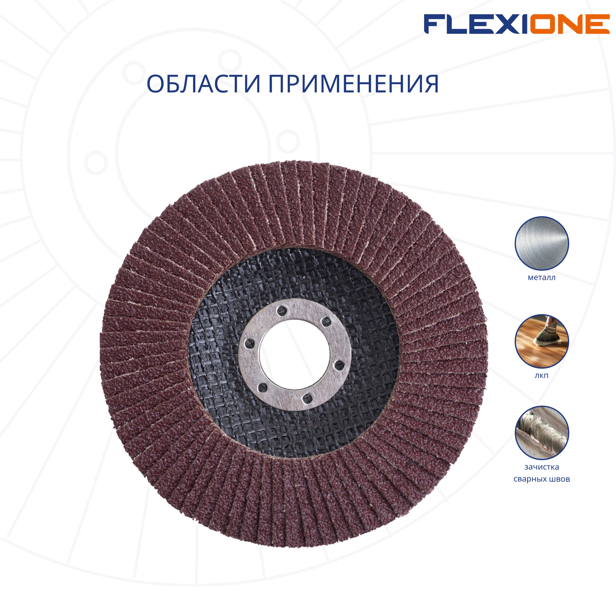 | Дополнительная информация | Круг лепестковый FLEXIONE плоский 125х22мм Р80 |