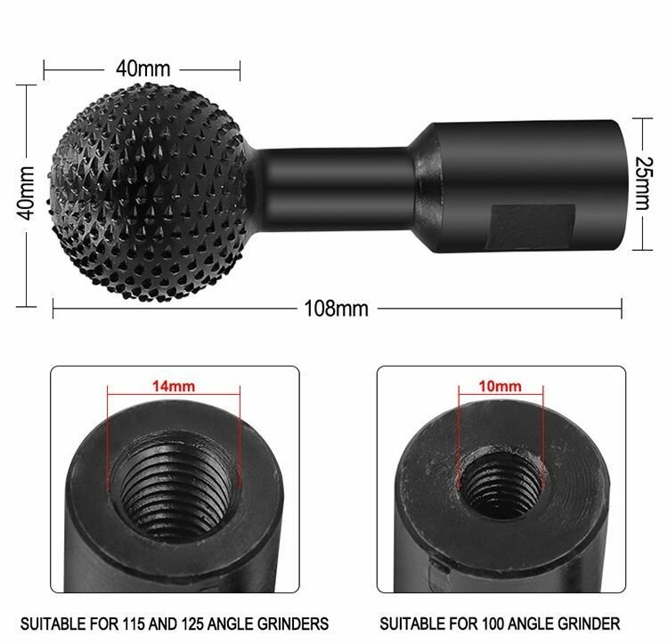 Фреза сферическая по дереву для УШМ под диск 125 мм, М14, для фигурных работ болгаркой, d 40 мм, max 5 000 об/мин интересное: