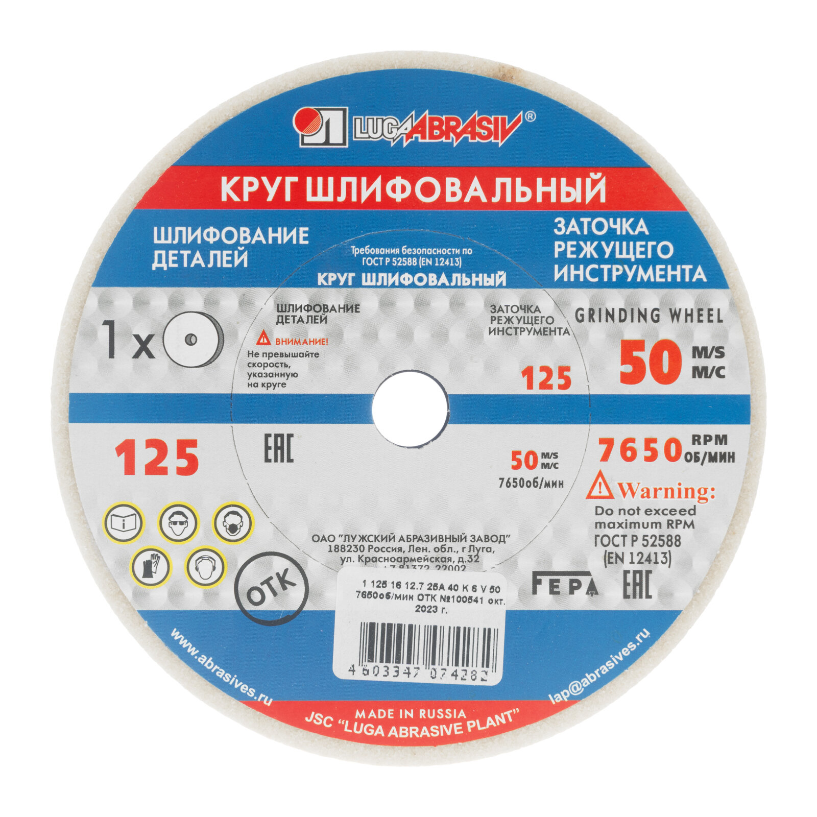 Купить Круг шлифовальный Луга 125 х 16 х 12, 7 мм, 25А, F40, K 73476