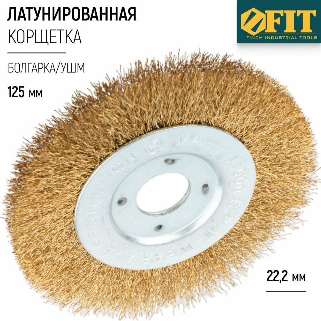 Корщетка-колесо, посадочный диаметр 22,2 мм, стальная латунированная волнистая проволока 125 мм