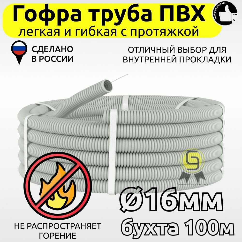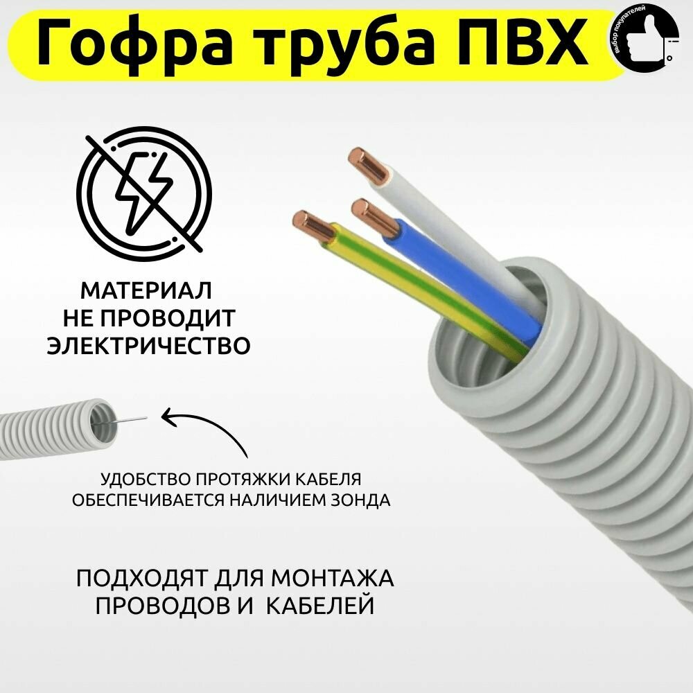 Гофра для кабеля Труба ПВХ 16мм гофрированная с протяжкой 100м интересное: