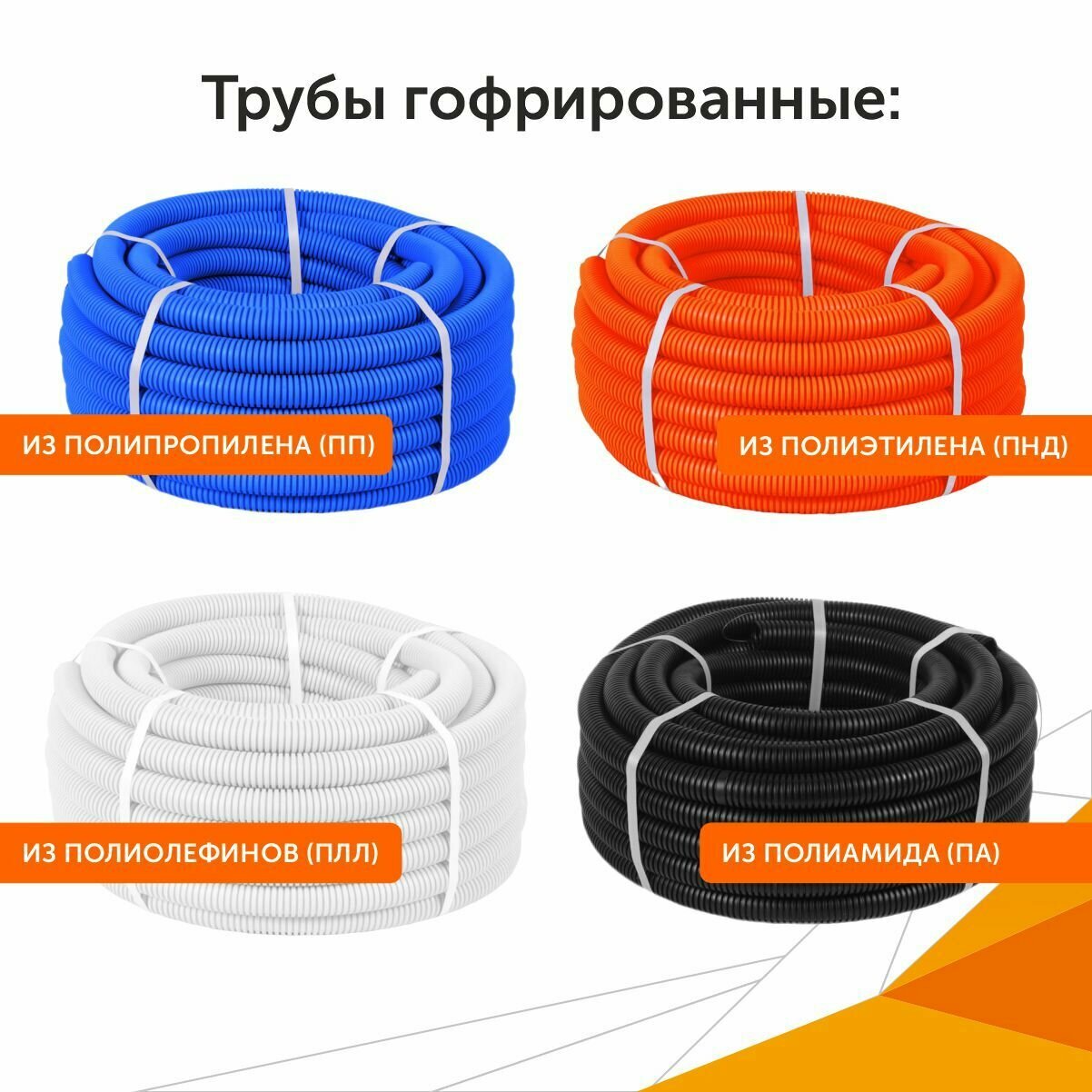 СохранитьТруба гофрированная ПП лёгкая негорючая (НГ) синяя d16 мм, 10м/уп интересное:
