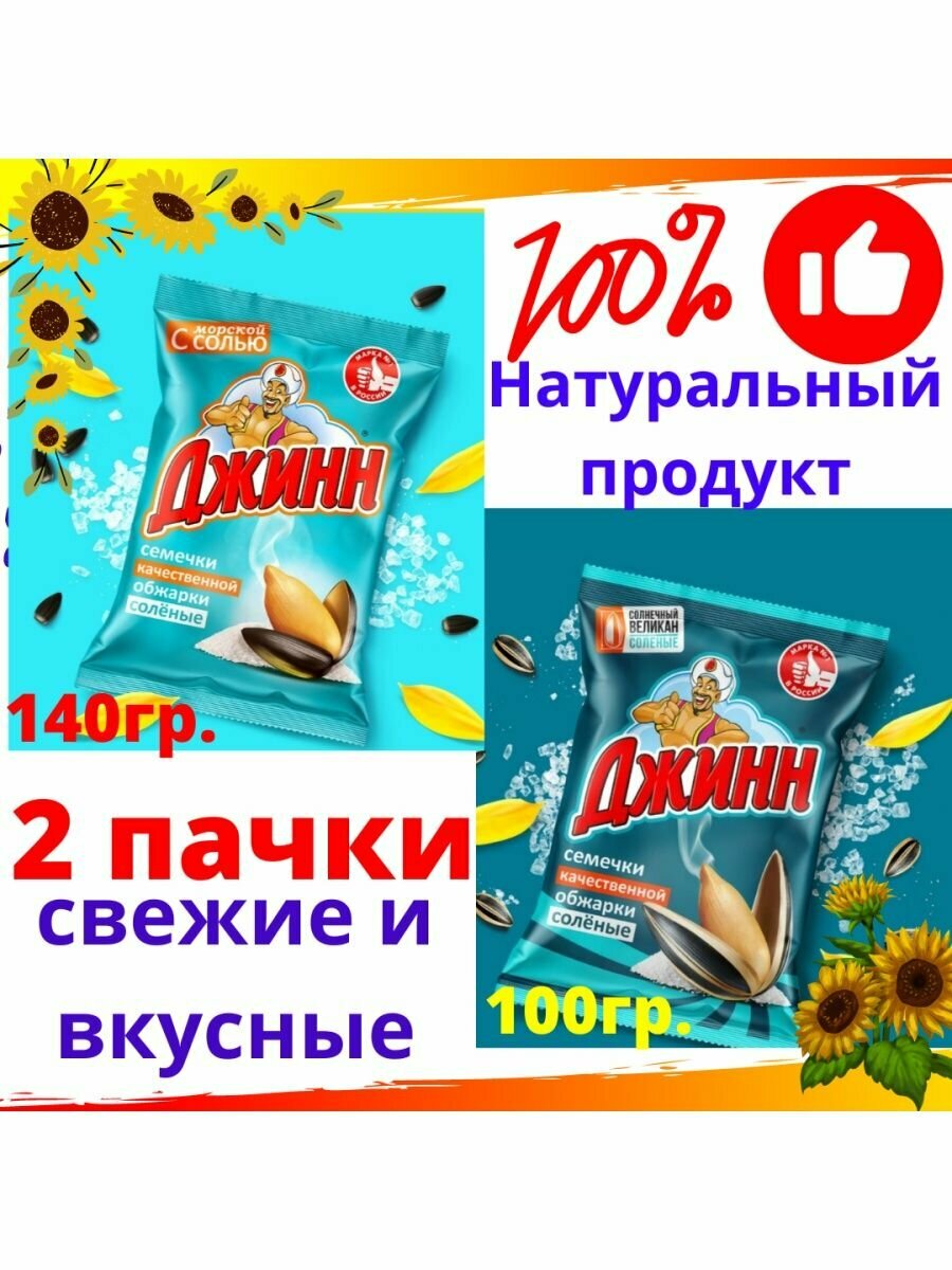 | Подробная комплектация | семечки Джинн жареные соленые 1 пачка по 100гр. 1 пачка 140гр. |