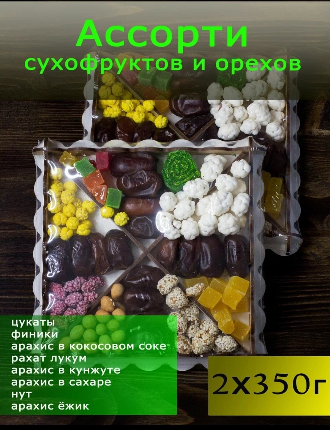 | Состав | Цукаты, финики, арахис в кокосовом соке, рахат лукум, арахис в кунжуте, арахис в сахаре, нут жаренный, арахис ёжик |