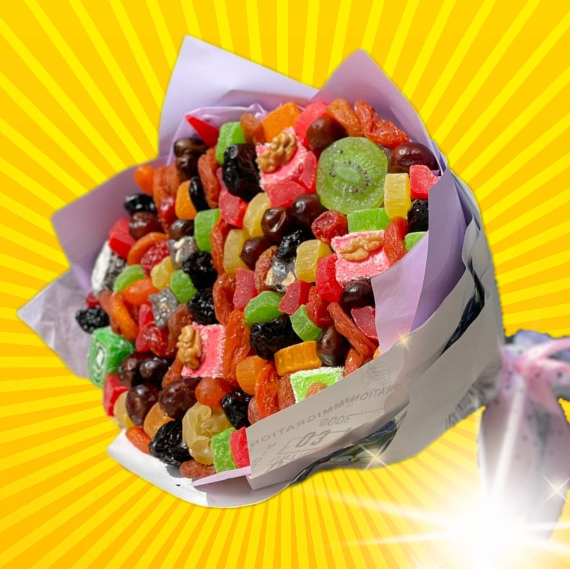 | Состав | инжир, курага, изюм, киви, кумкват, цукаты, финики, рахат лукум |
