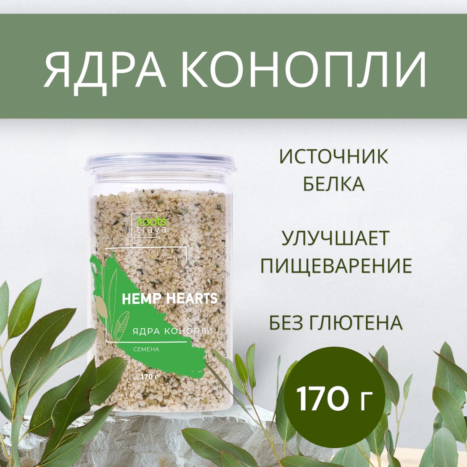 Ядра Конопли Очищенные Без Глютена для Похудения, 170 г - iRoots Trava интересное: