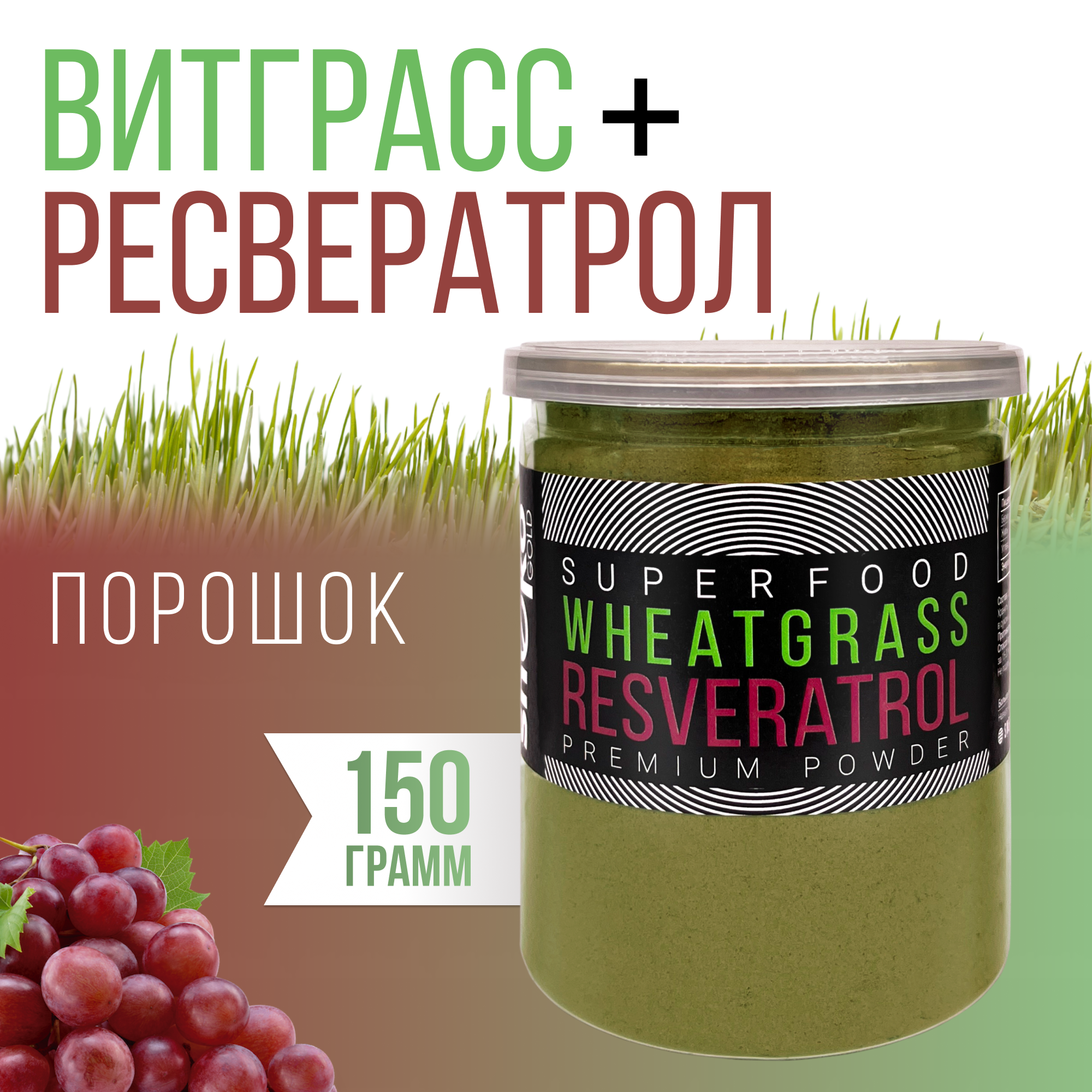 Ресвератрол порошок из красного винограда+ витграсс, 150 г интересное: