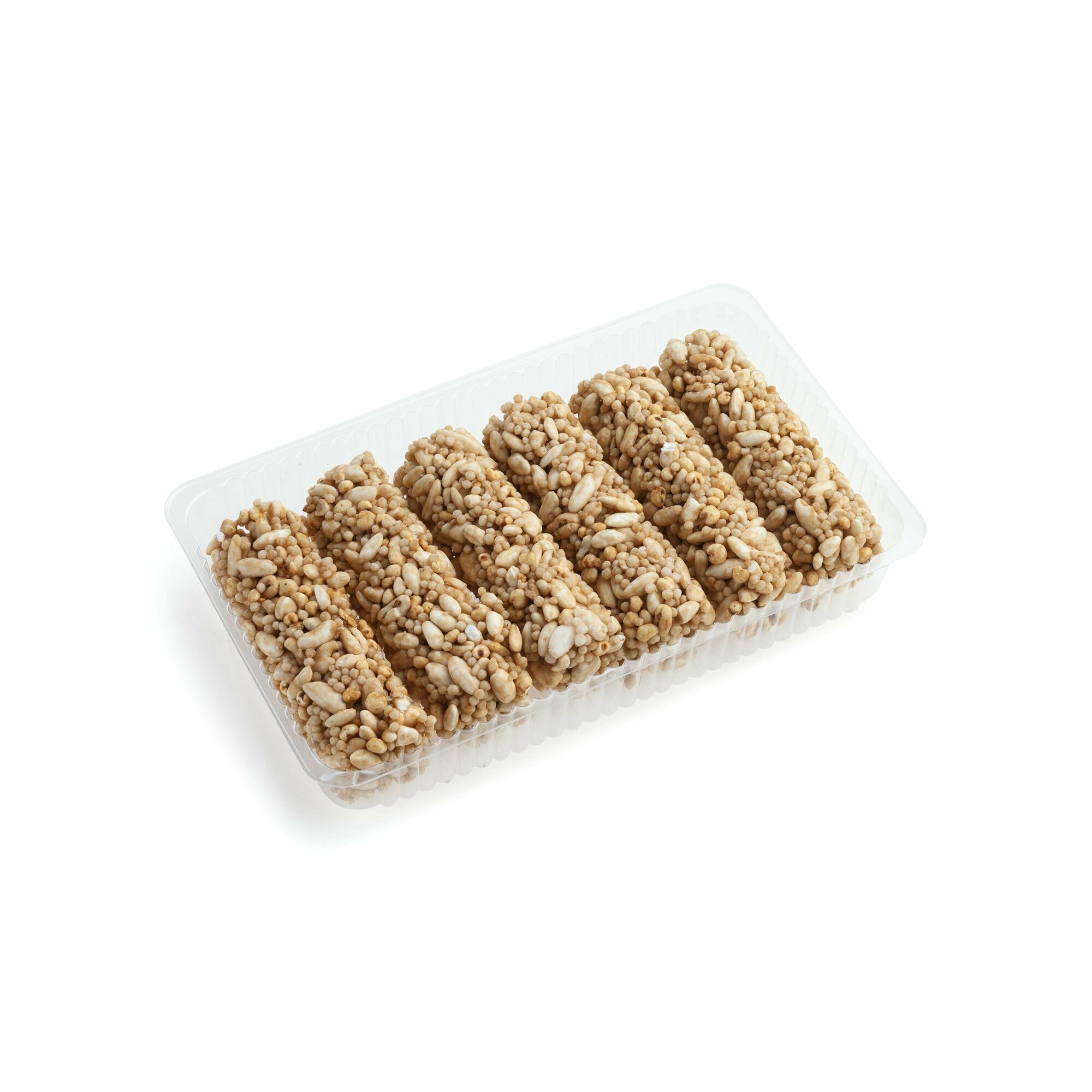 | Состав | Взорванные зерна риса, пшена; патока крахмальная, масло подсолнечное рафинированное дезодорированное, солод ячменный, соль пищевая |