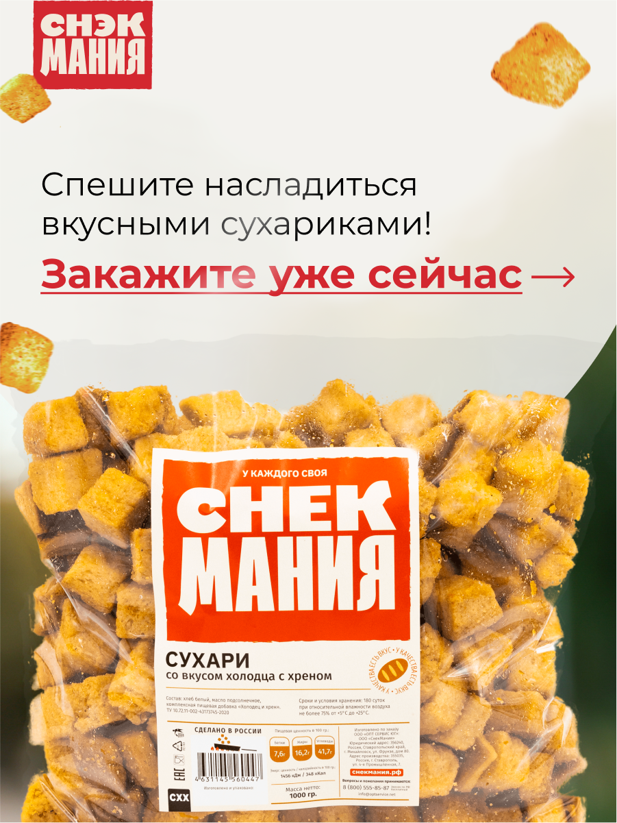 Ниже Вы можете прочитать отзывы на Хрустящие Сухари Холодец с хреном 1кг / Сухарики с холодцом хрен 1 000 гр/ Снеки / Продукты, ознакомится с подробными характеристиками, посмотреть интересные обзоры и фотографии на Хрустящие Сухари Холодец с хреном 1кг / Сухарики с холодцом хрен 1 000 гр/ Снеки / Продукты.