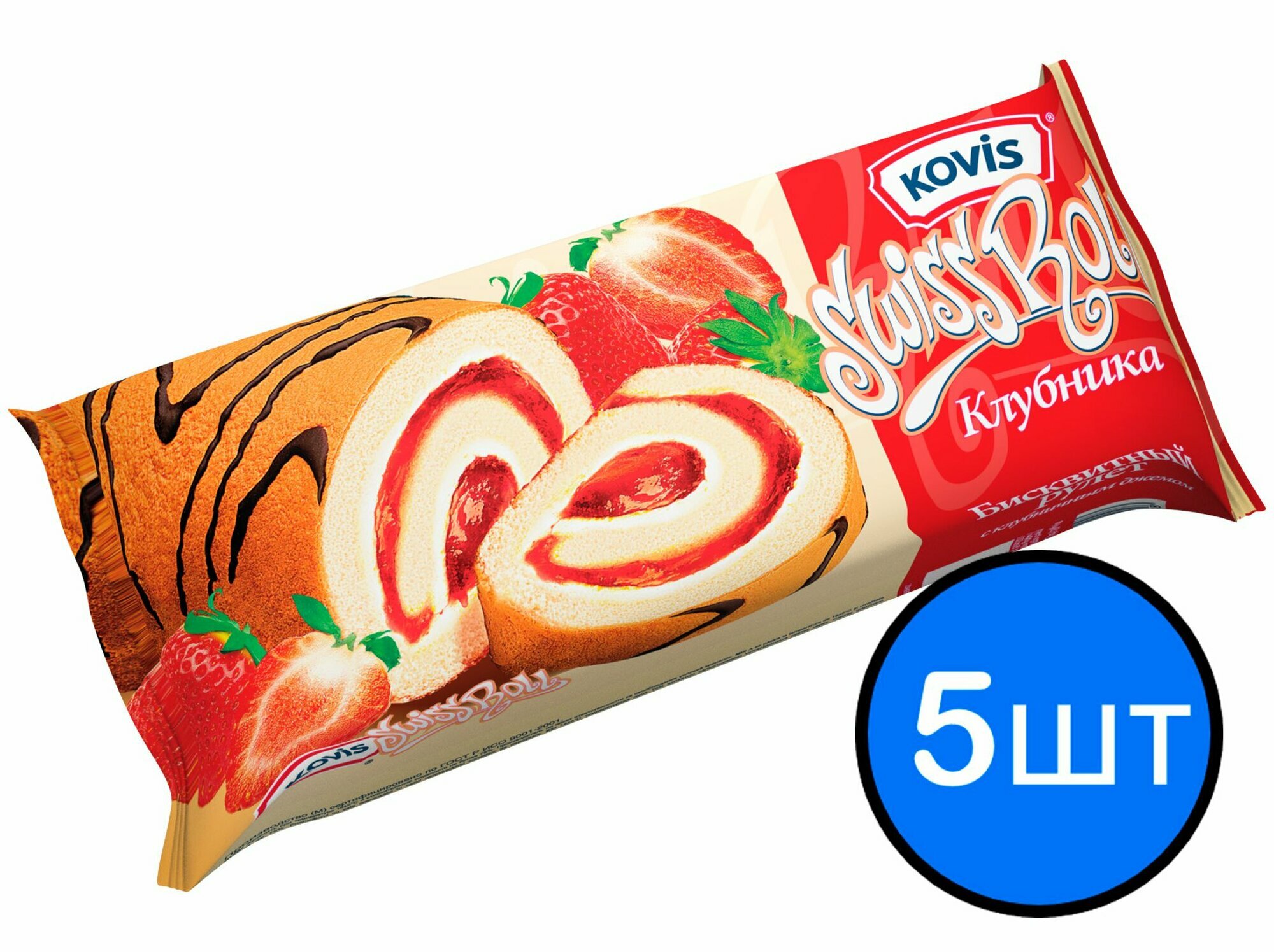 Рулет бисквитный с клубничной начинкой Kovis (Ковис), 175г х 5шт интересное: