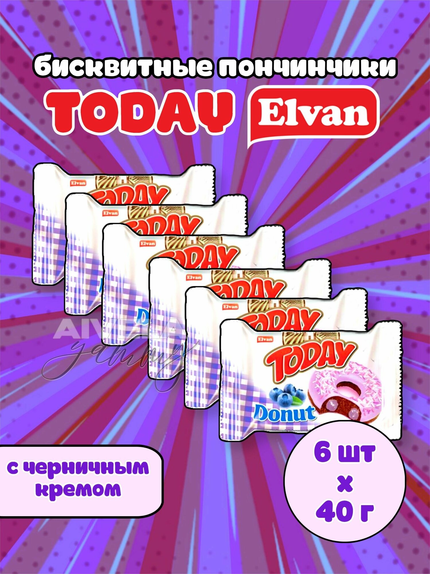 Купить Elvan Today Donut Blueberry/ Пончики с черничным кремом в глазури/ Детские пирожные с начинкой (6 индивидуальных упаковок)