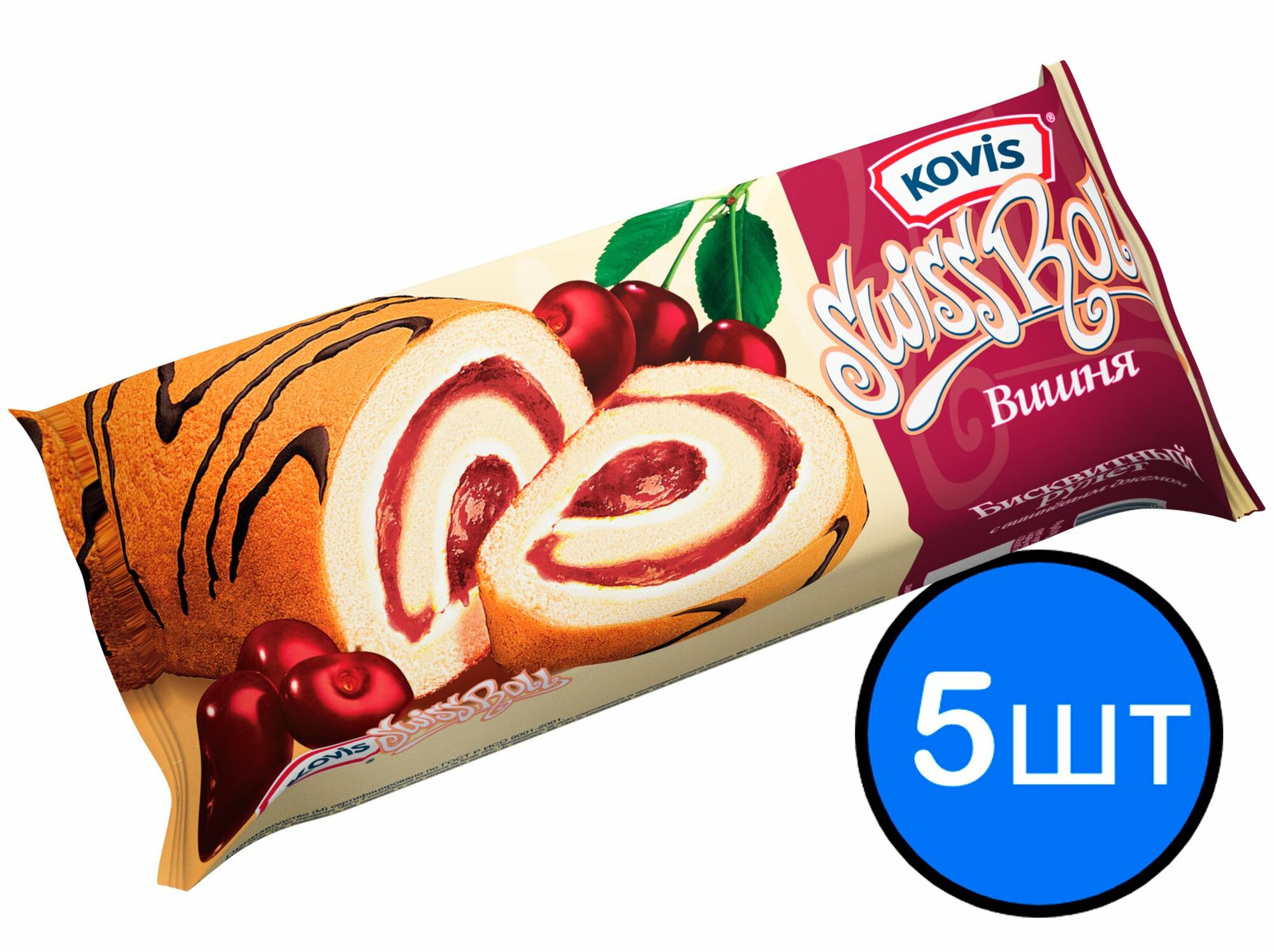 Рулет бисквитный с вишневой начинкой Kovis (Ковис), 175г х 5шт интересное: