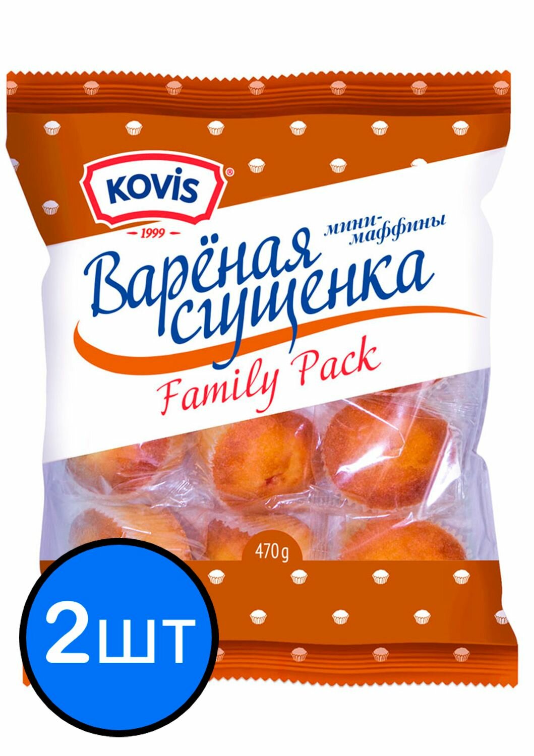 Купить Мини-маффины с начинкой вареная сгущенка Kovis (Ковис), 470г х 2шт