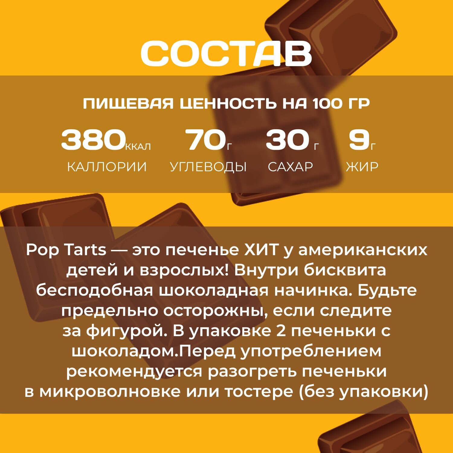 Pop tarts Печенье с шоколадной начинкой 2 шт. в уп (96 гр.) 6 уп. в наборе интересное: