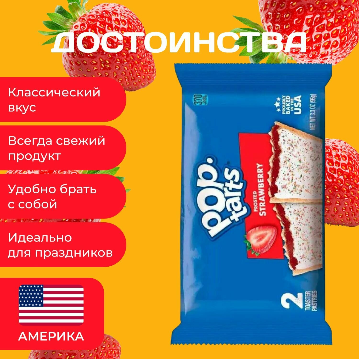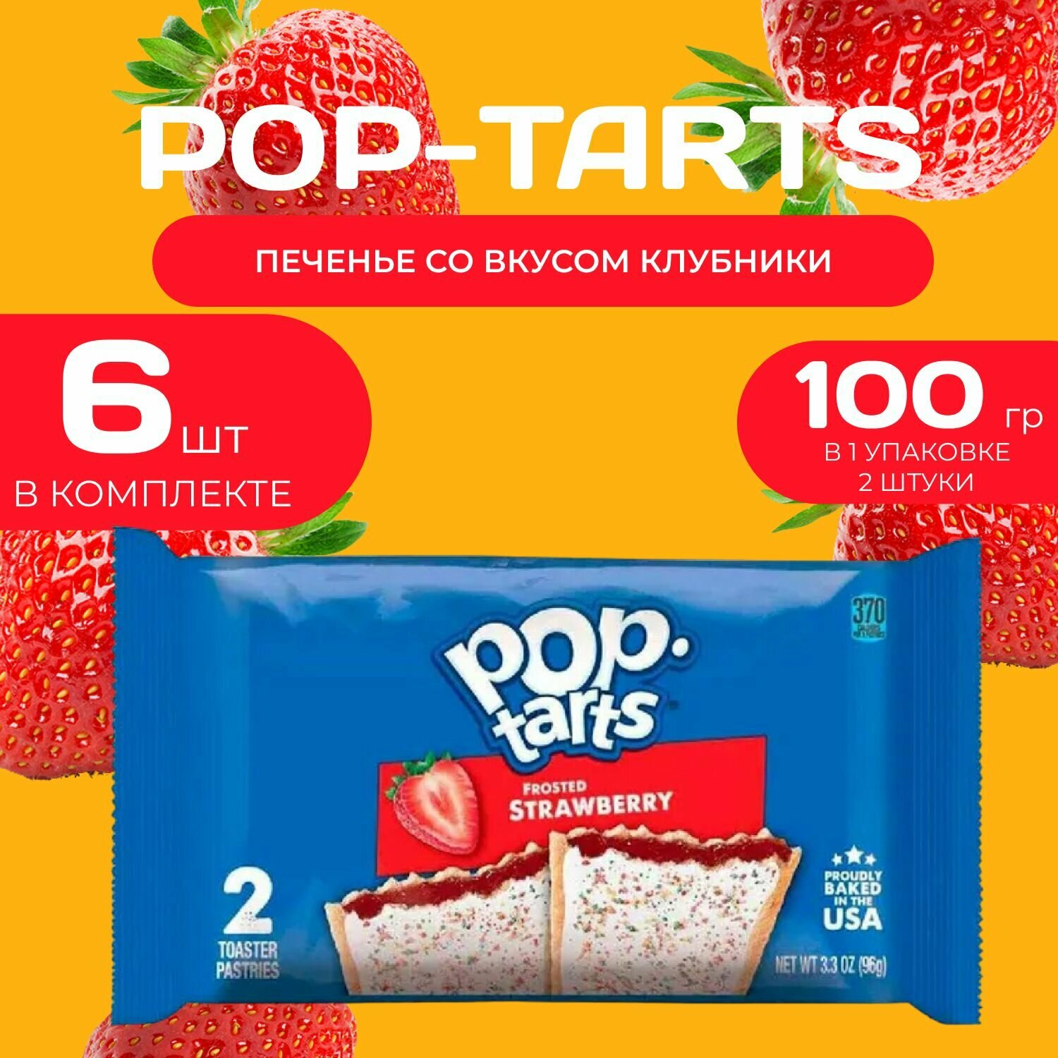 Pop tarts Печенье с начинкой из клубники 2 шт. в уп (96 гр.) 6 уп. в наборе интересное: