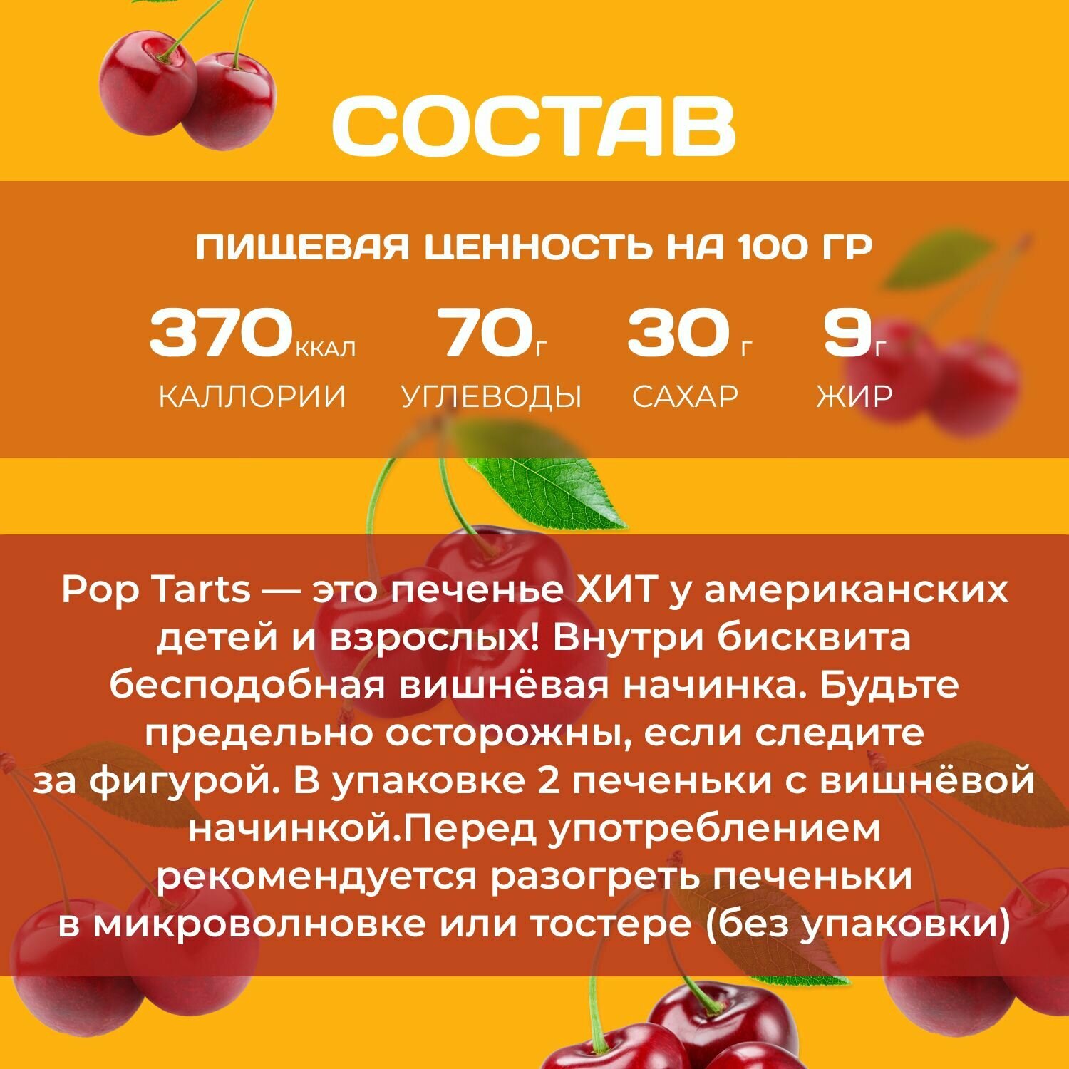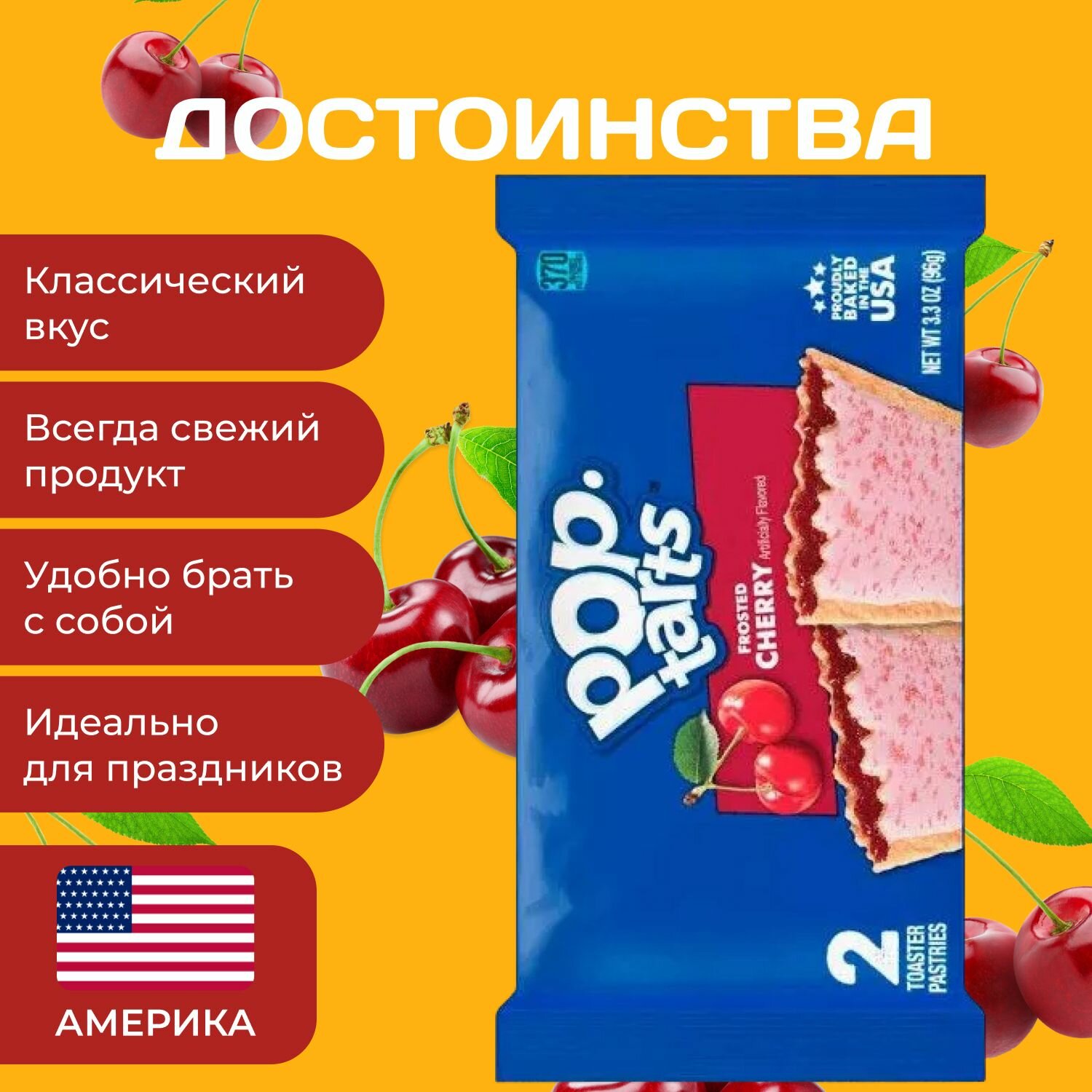 Pop tarts Печенье с вишневой начинкой 2 шт. в уп (96 гр.) 6 уп. в наборе интересное: