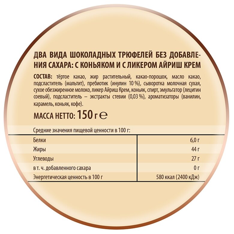 Трюфели шоколадные Победа вкуса без сахара с коньяком и с ликером айриш крем (два вида) 150 г интересное:
