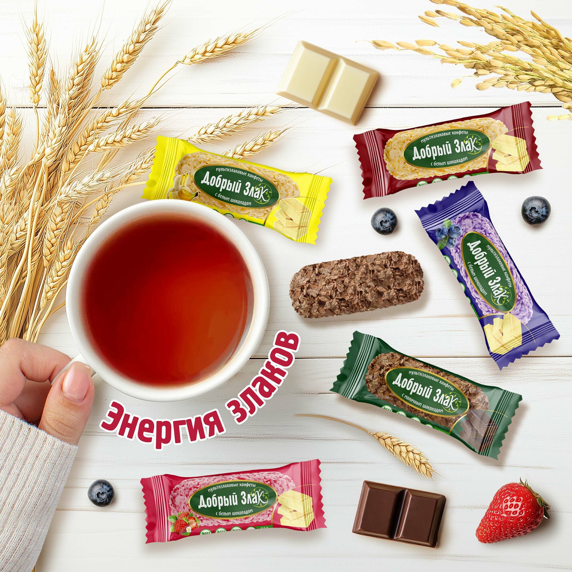 Мультизлаковые конфеты добрый злак с белым шоколадом со вкусом голубики, 400 г интересное: